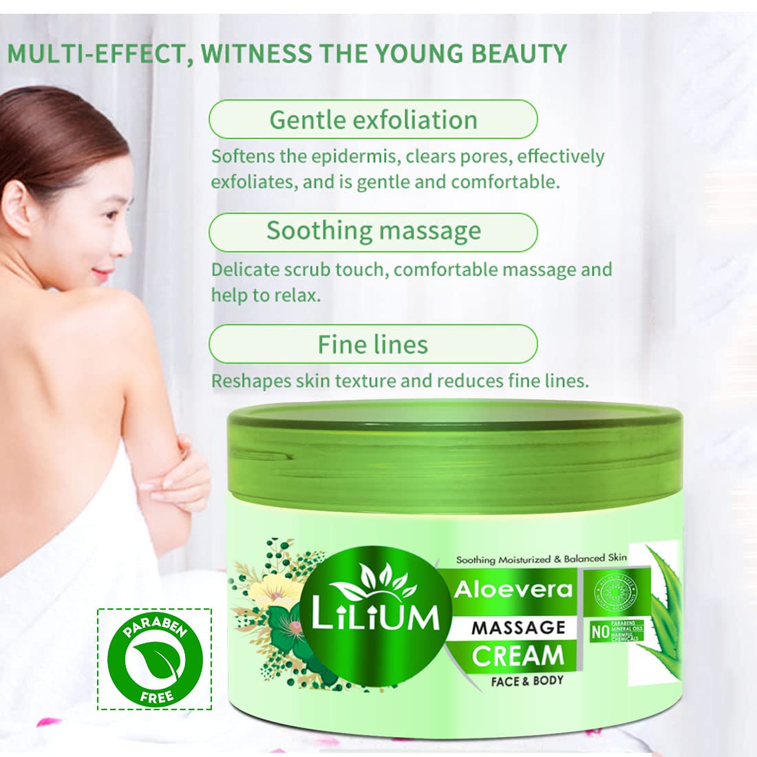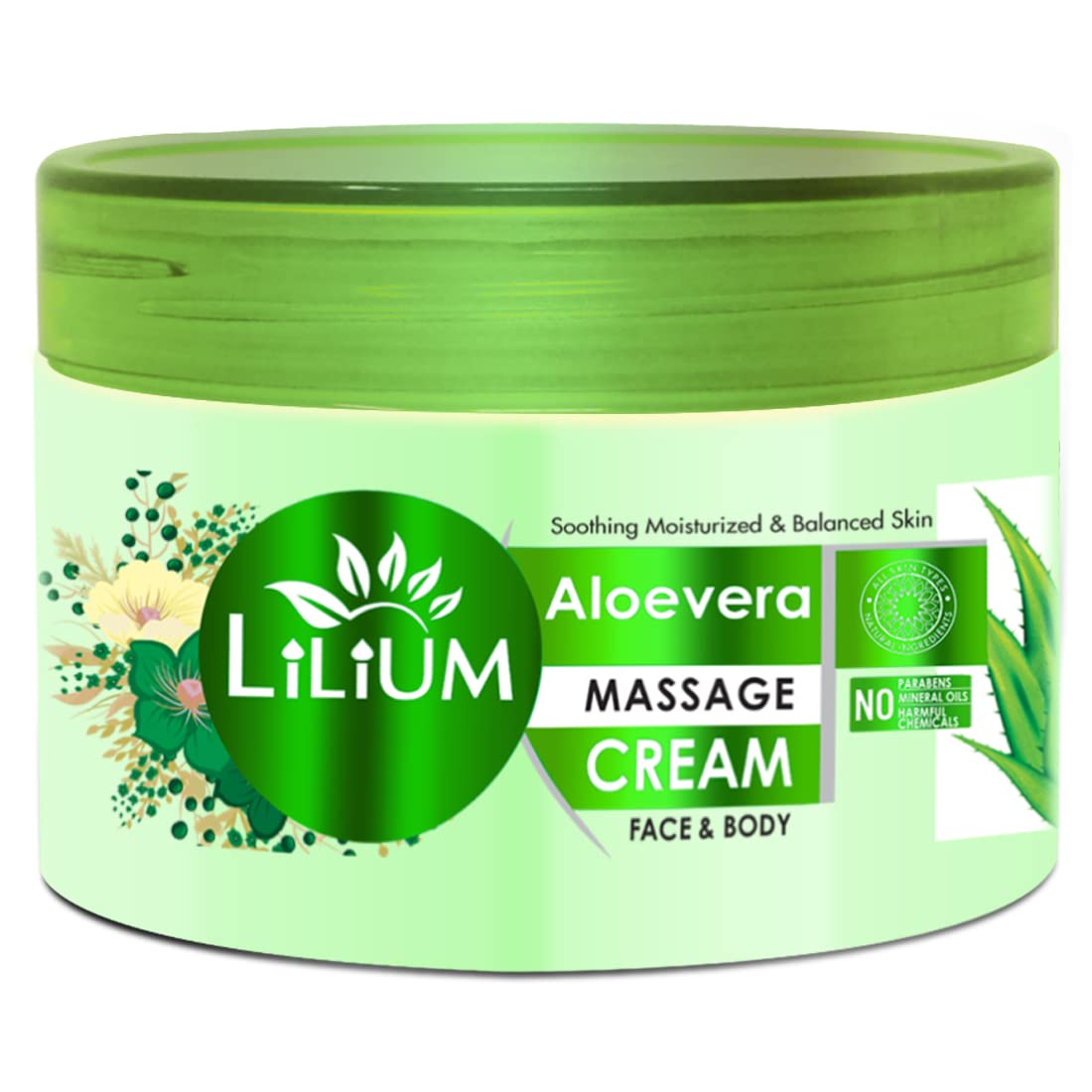 Lilium Aloe Vera Face & Body Massage Cream 250gm Soothing Moisturized & Balanced Skin Promotes Radiant Complexion With Cooling & Calming Effect All Skin Types