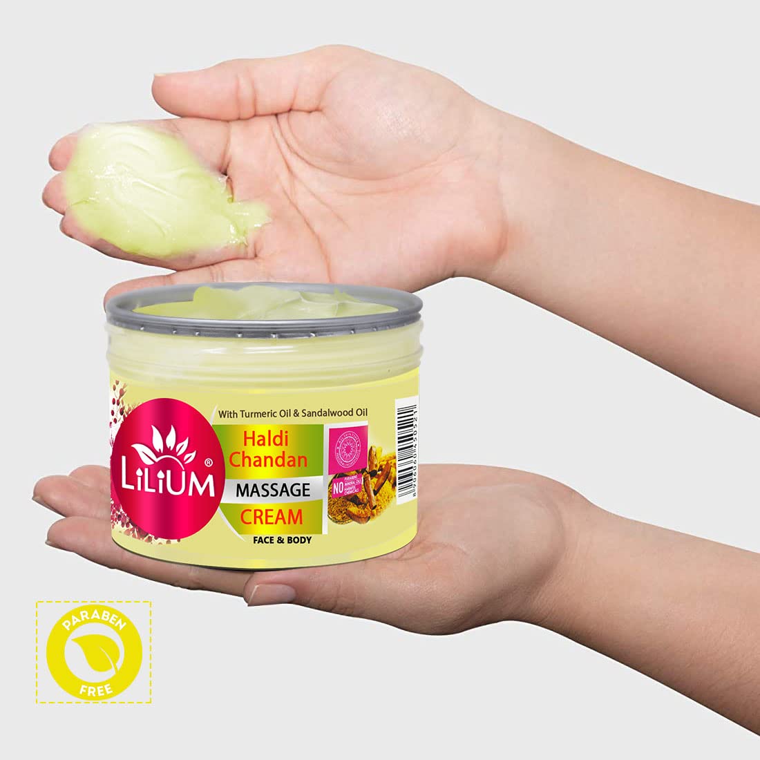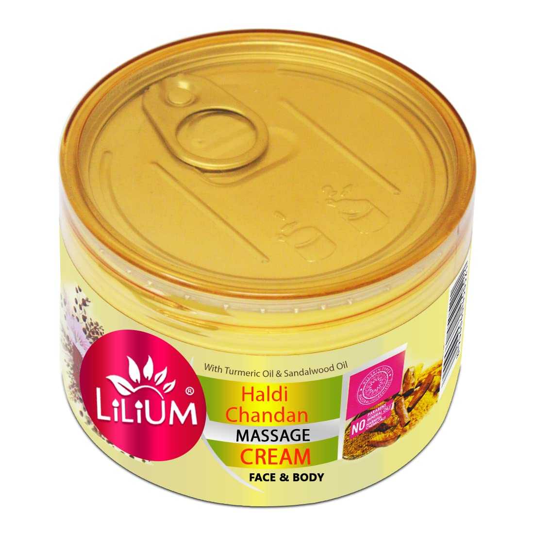 Lilium Haldi Chandan Massage Cream 250gm | Enriched With Turmeric & Sandalwood Oil | Soothing Moistirized & Balanced Skin Paraben Free Anti-Inflammatory Suitable for All Skin Types