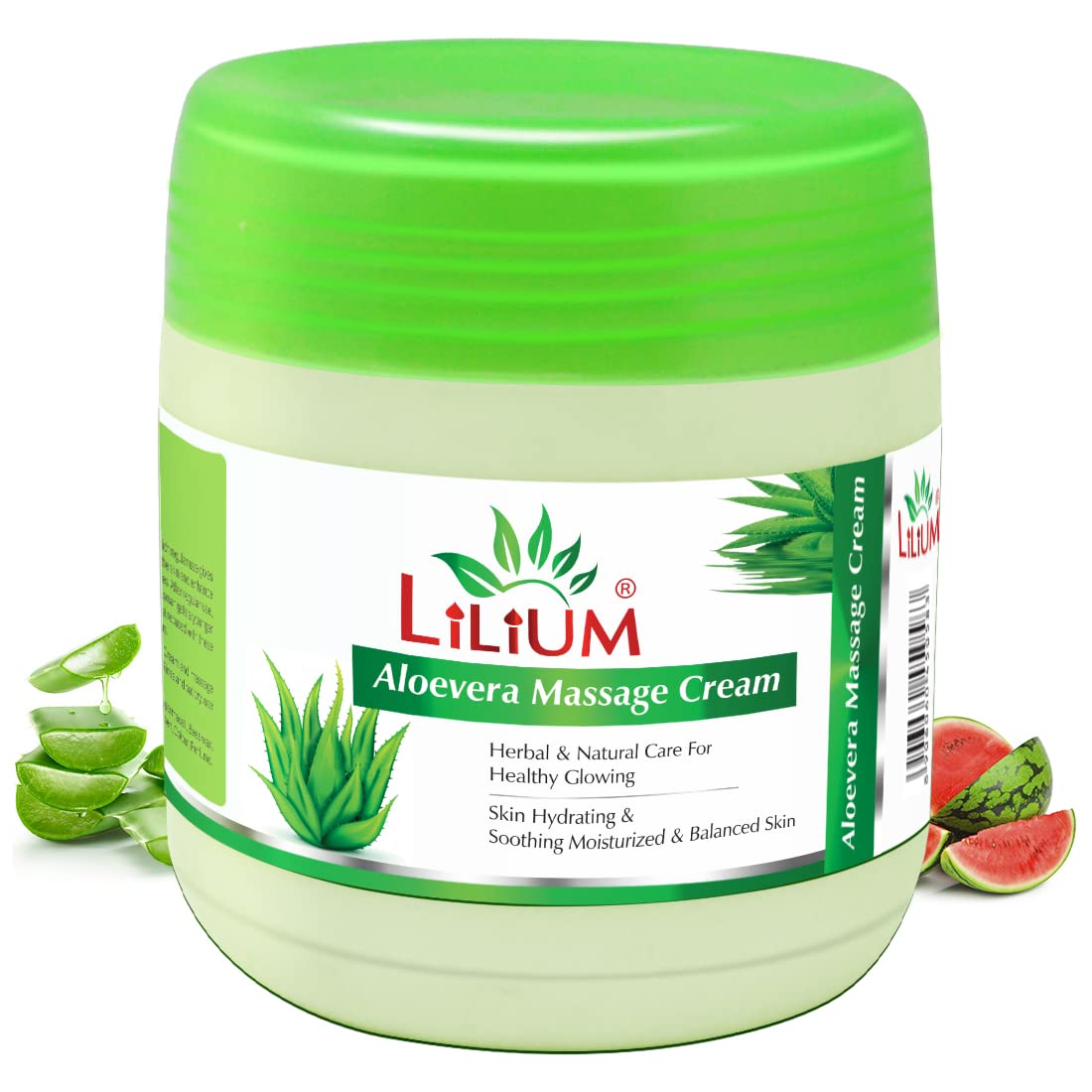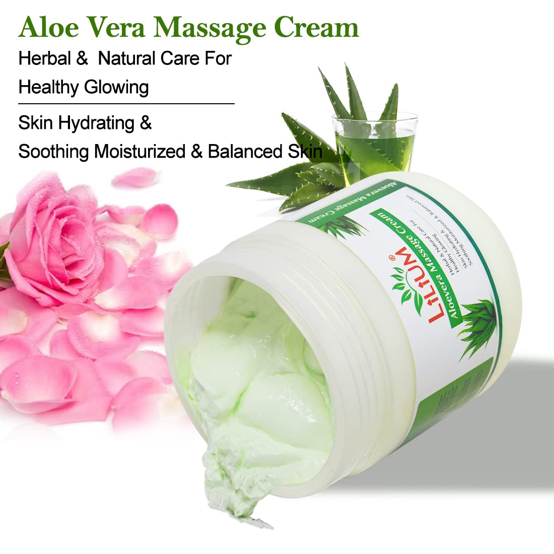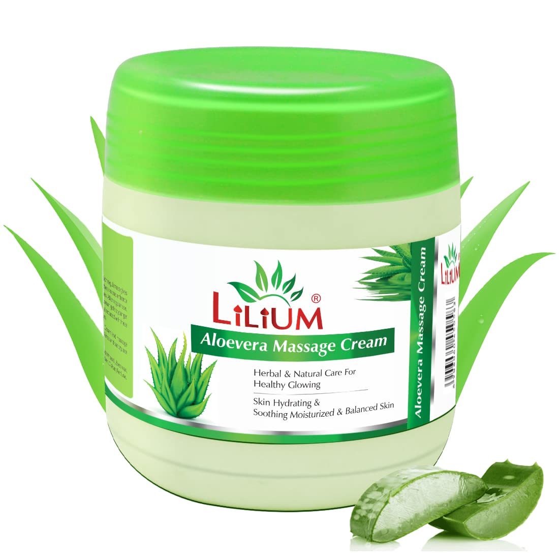 Lilium Herbal Aloe Vera Massage Cream 500gm | Natural Care for Healthy Glowing | Hydrating Soothing Moisturized & Balanced Skin