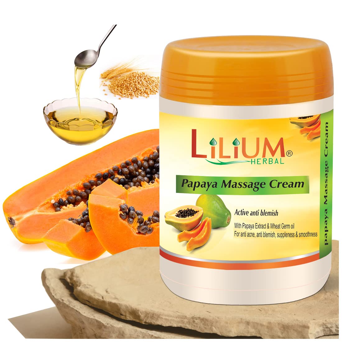 Introducing Lilium Herbal Papaya Massage Cream Enriched with the natural goodness of papaya extract and a blend of soothing herbal ingredients this massage cream is designed to elevate your massage session to a whole new level of relaxation and skincare