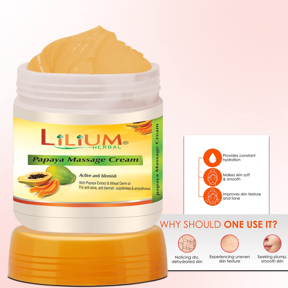 Lilium Herbal Papaya Massage Cream Cream Face & Body 500ml Brighten & Rejuvenate Skin Hydrating Formula Fights Wrinkles & Fine Lines Anti-Aging Properties Soothes & Nourishes For Men & Women