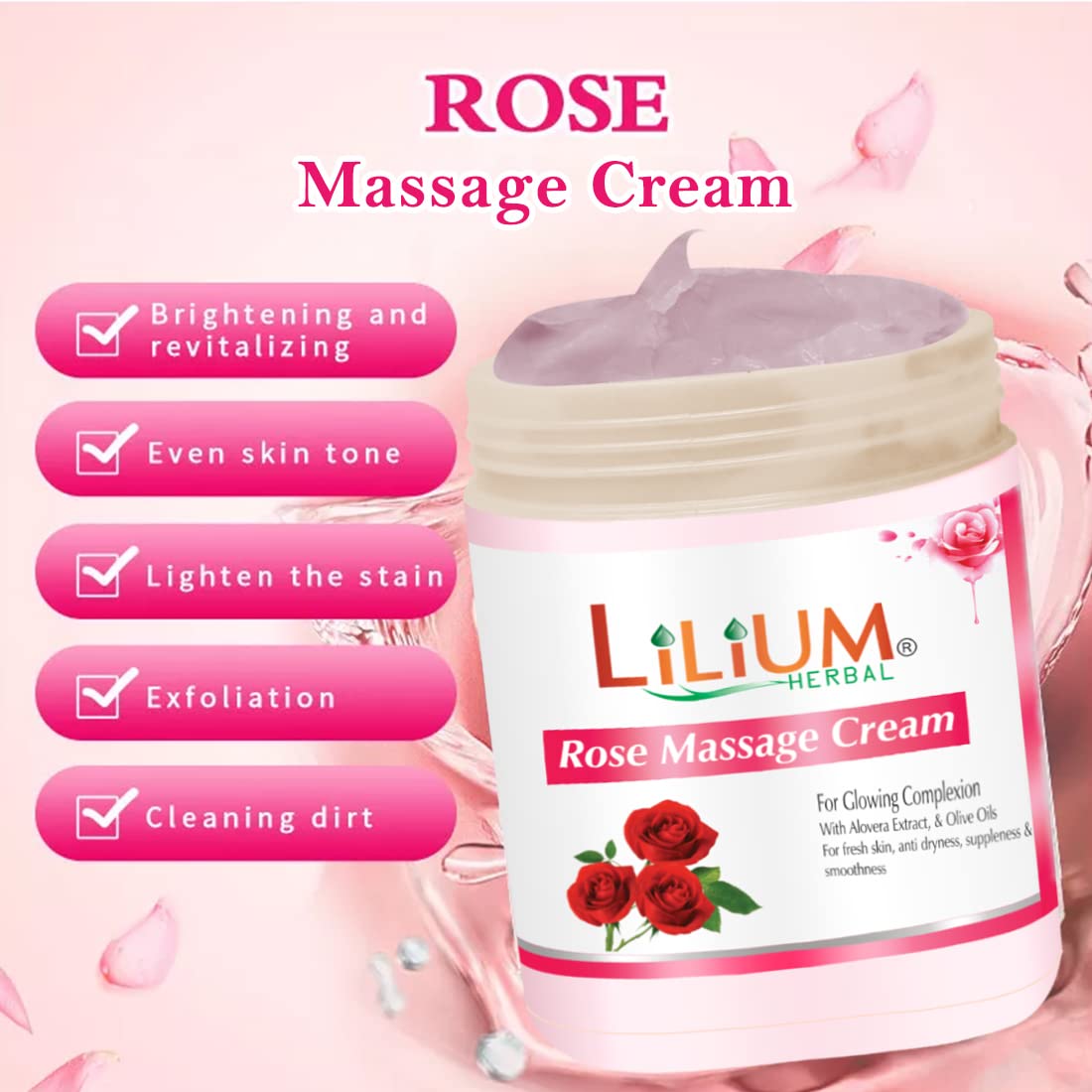 Lilium Herbal Rose Massage Cream 900g Skin Toning Skin Soothing Anti-Inflammatory Aromatic Rich in Antioxidants Reduces Wrinkles Hydrates your skin & Moisturize Naturally Suitable For All Skin