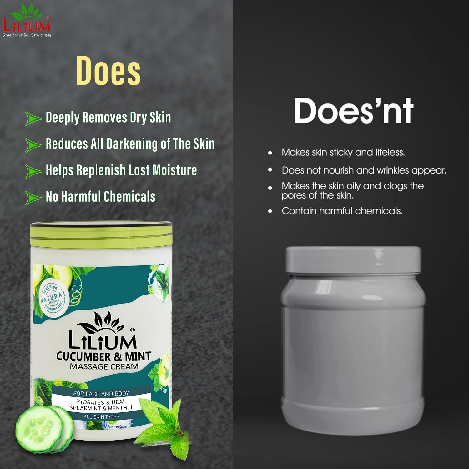 Lilium Refresh & Renew Massage Cream Cucumber & Mint 500ml | For Face & Body Hydrates & Heal Spearmint & Menthol Cool Fresh & Hydrated Skin 24X7 | Heal UV Damages & Sun Burns | All Skin Types