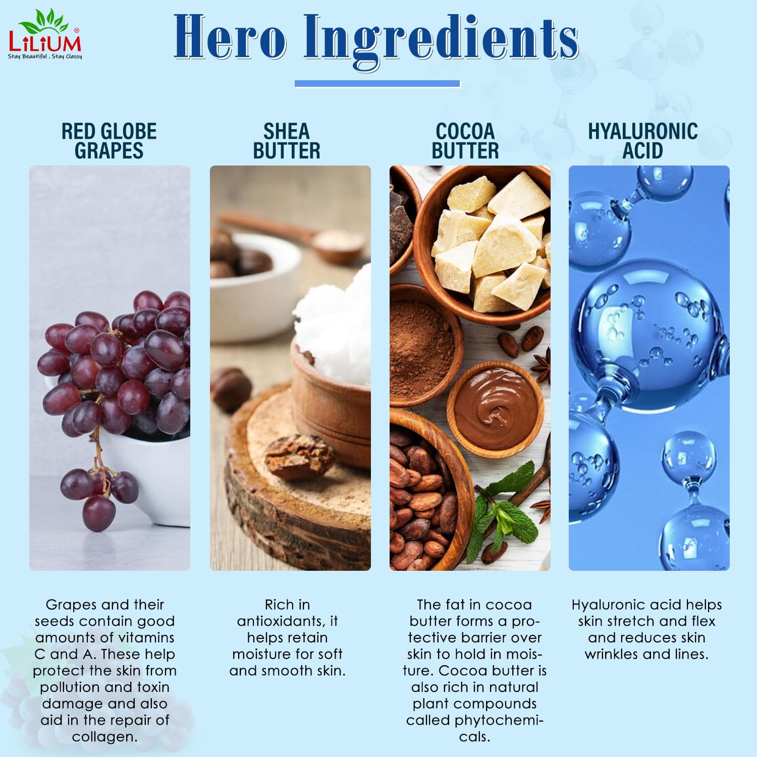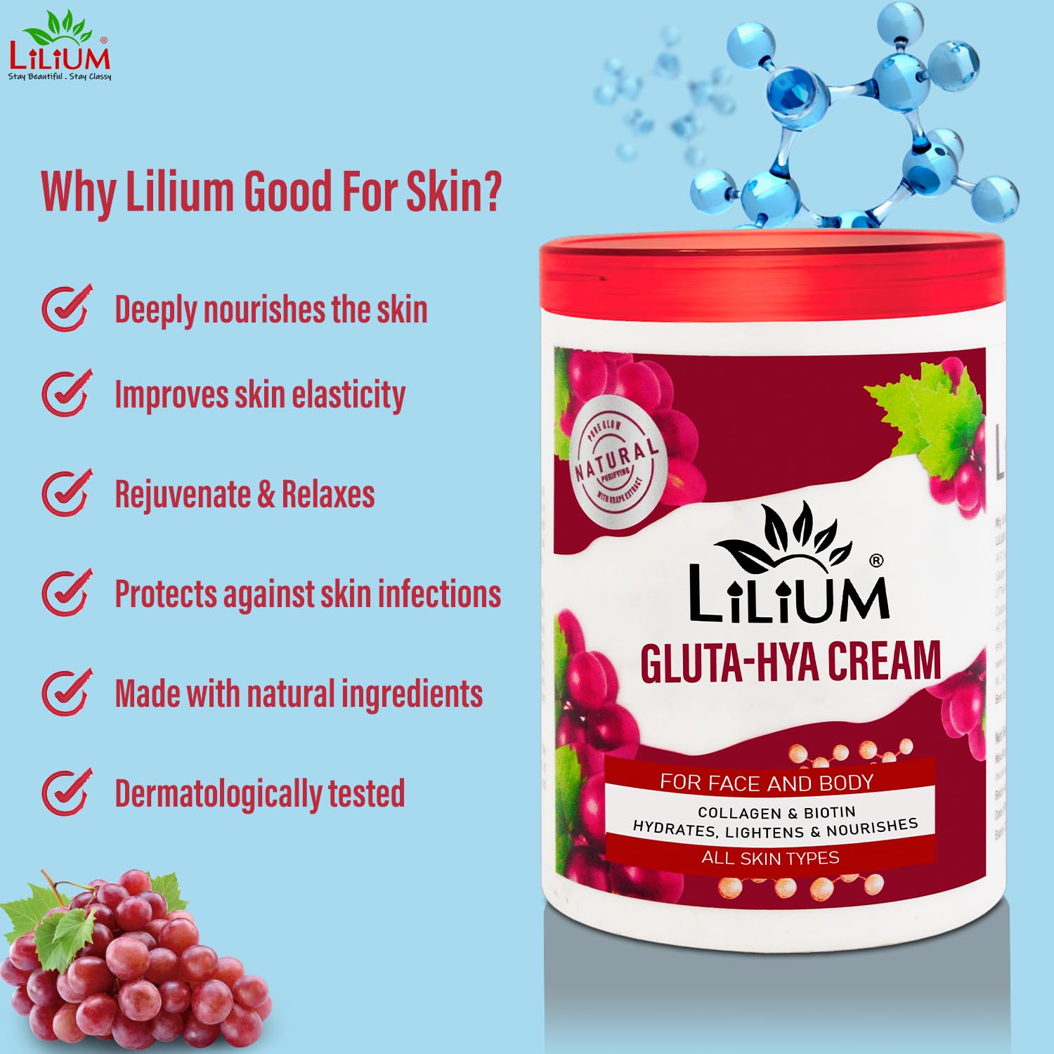 Lilium Revitalizing Massage Cream Gluta-Hya 500ml | Collagen & Biotin | Hydrates Lightens & Nourishes Minimizes Dermal Pores | Makes Skin Supple & Firmer | For Face & Body | All Skin Types
