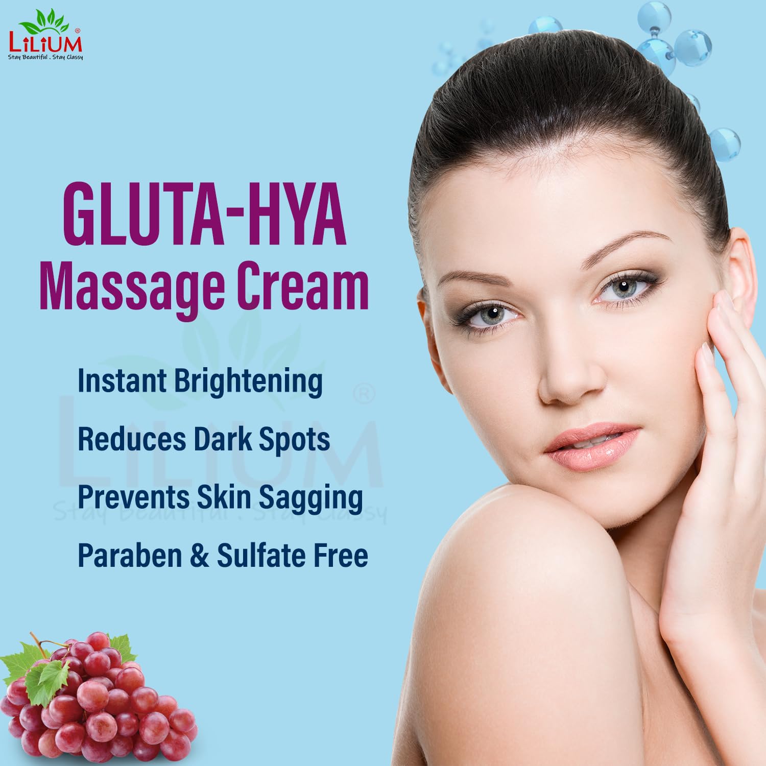 • [ANTI-AGING PROPERTIES] The combined effects of glutathione and hya make this massage cream a powerful anti-aging solution. It helps in minimizing the signs of aging such as fine lines and wrinkles promoting a more youthful and radiant complexion