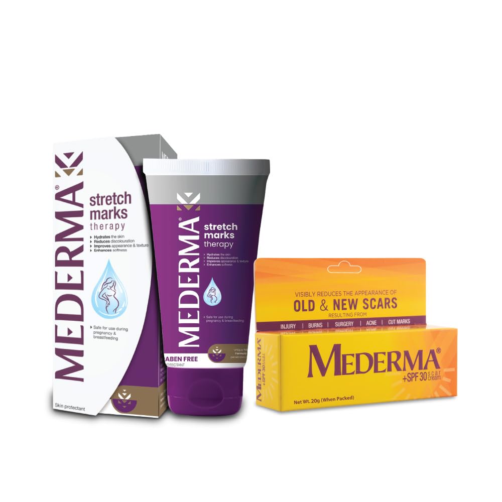 MEDERMA Stretch Mark Removal Therapy 25g & SPF 30 Sunscreen & Scar Cream 20g Combo