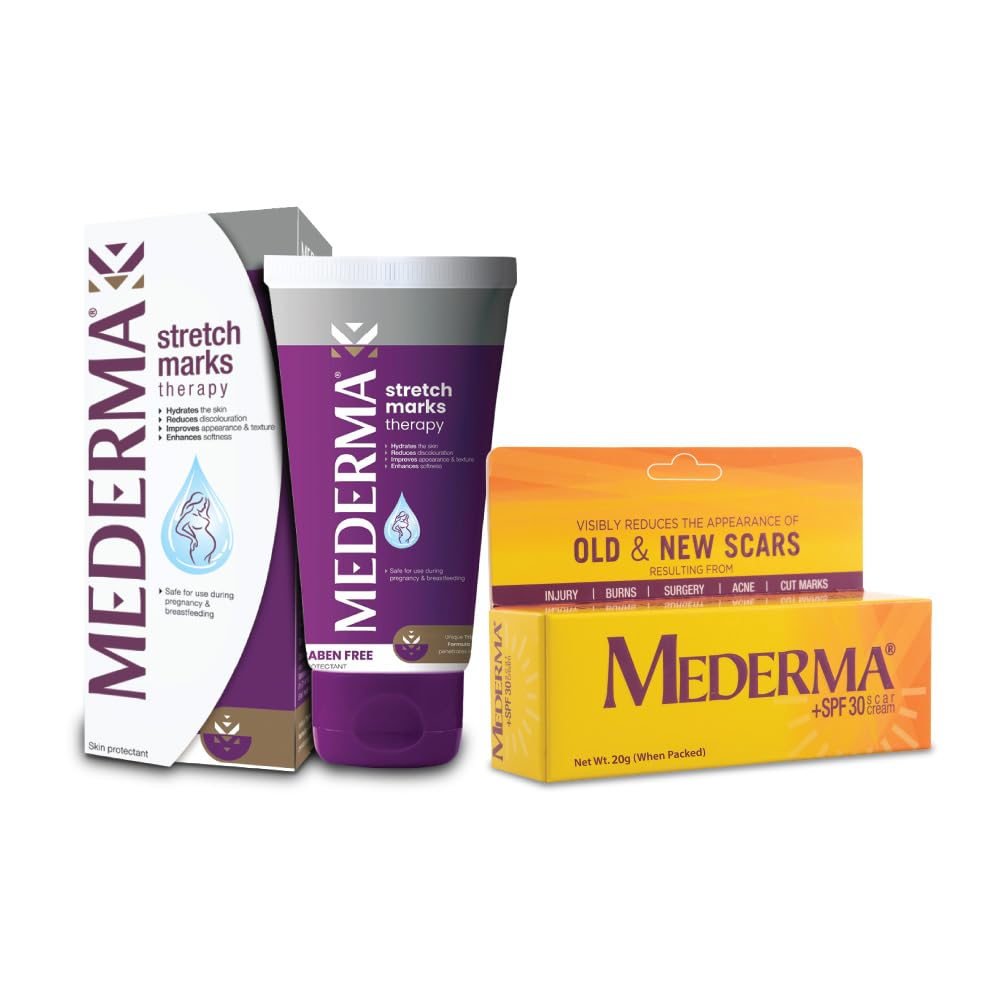 MEDERMA Stretch Mark Removal Therapy 50g & SPF 30 Sunscreen & Scar Cream 20g Combo