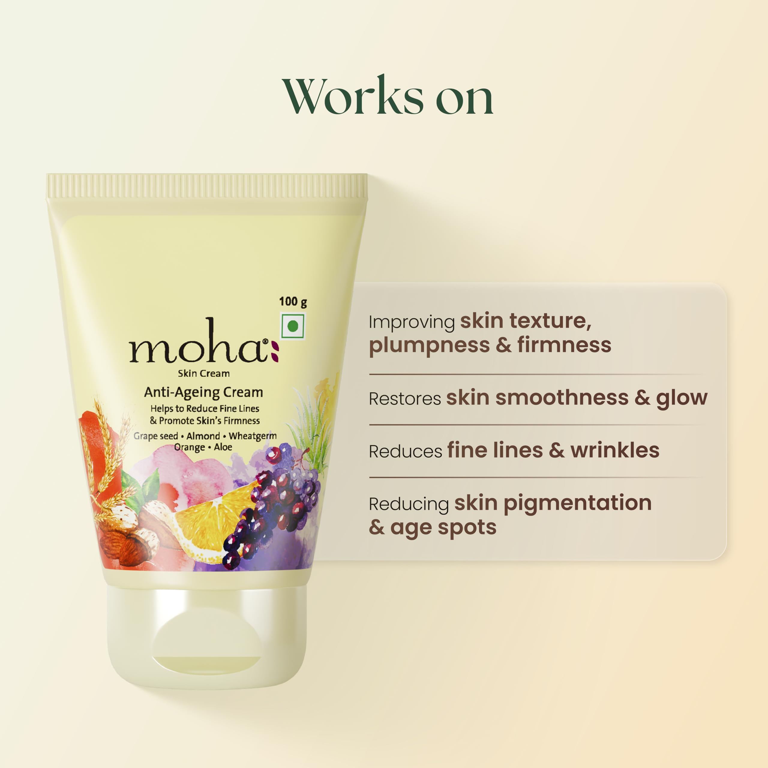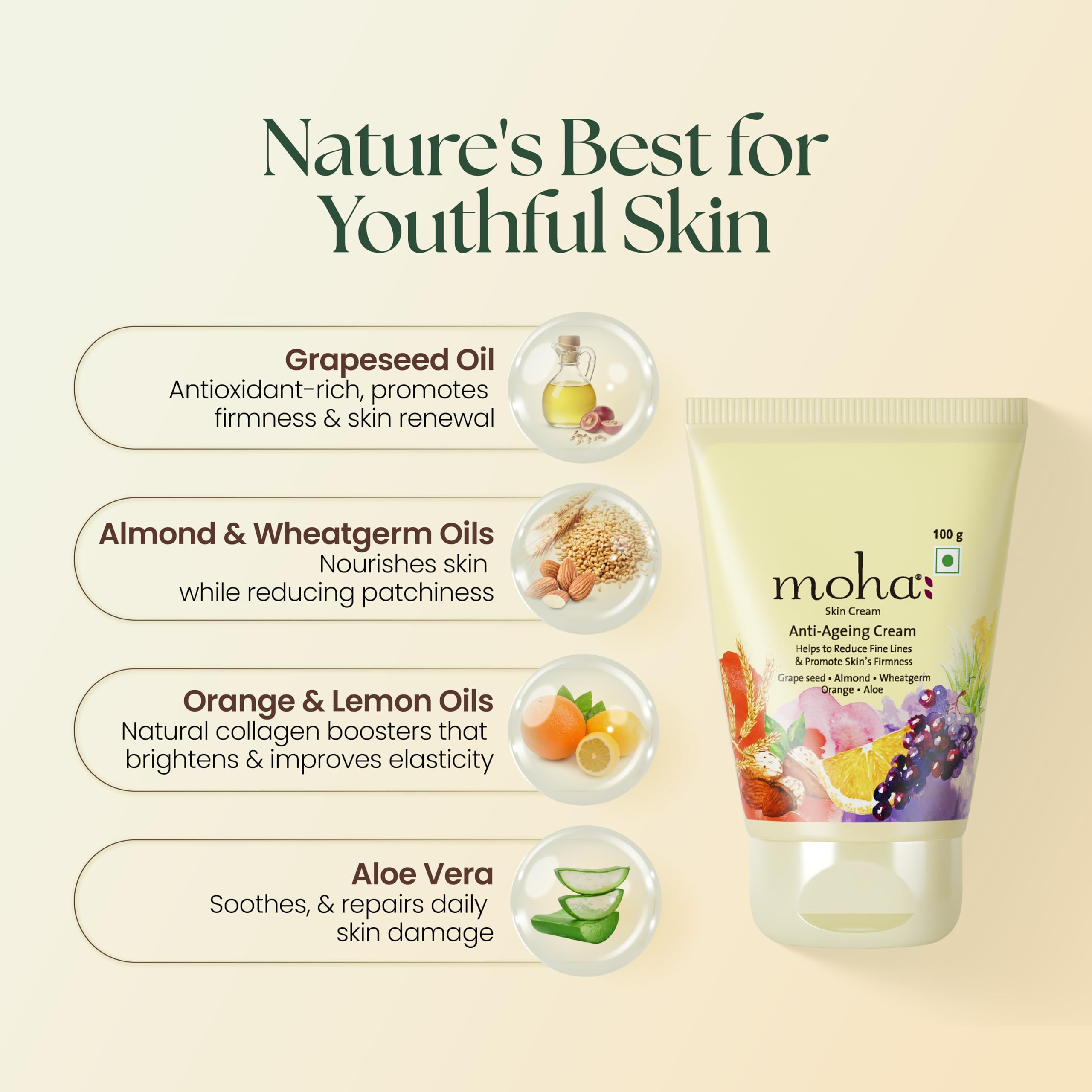 moha: Anti Ageing Skin Cream For Youthful & Glowing skin With The Blend of Pure Herbal Oils To Reduce Fine Lines Wrinkles Pigmentation Dark Spots | For All Skin Types - 100gm (Pack of 2)