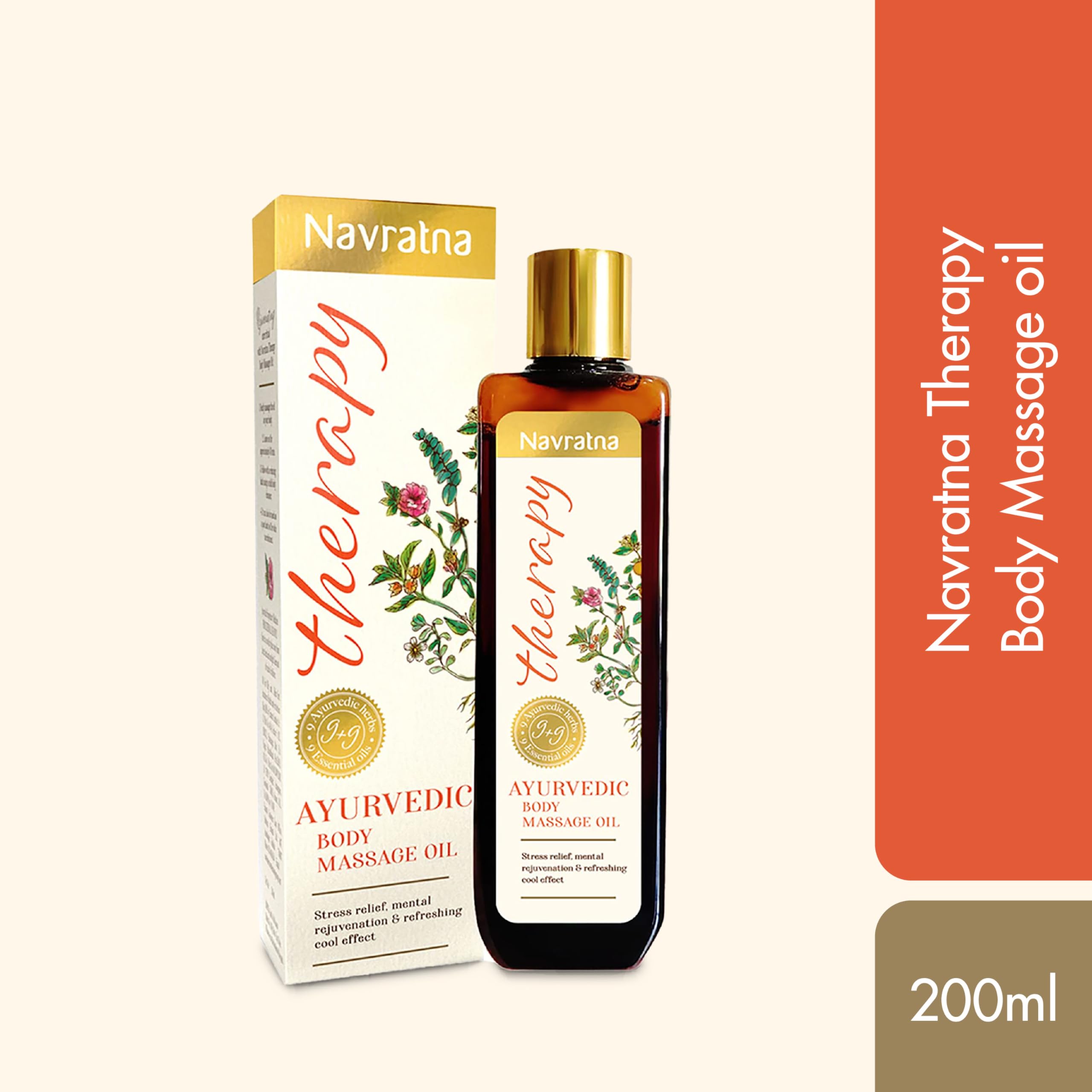Navratna Therapy Ayurvedic Body Massage Oil | With Ashwagandha & Orange Oil for Stress Relief & Rejuvenation | Aromatherapy Oil for relieving fatigue | Mood Uplifting | Relaxing Massage Oil for Full Body | For Women & Men 200ml