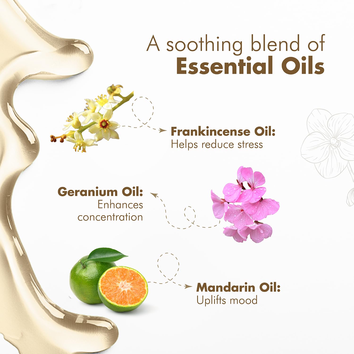 Uplift your mood rejuvenate your mind: This rejuvenating oil blend harnesses the power of potent ingredients to melt away mental exhaustion and restore clarity. Frankincense Essential Oil reduces stress promoting a serene state of mind while Geranium Oil