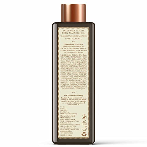 Ohria Ayurveda Dhanwantaram Thailam / Oil Dhanwantaram Body Massage Oil is an Ayurvedic classical formulation to deeply nourish & hydrate.