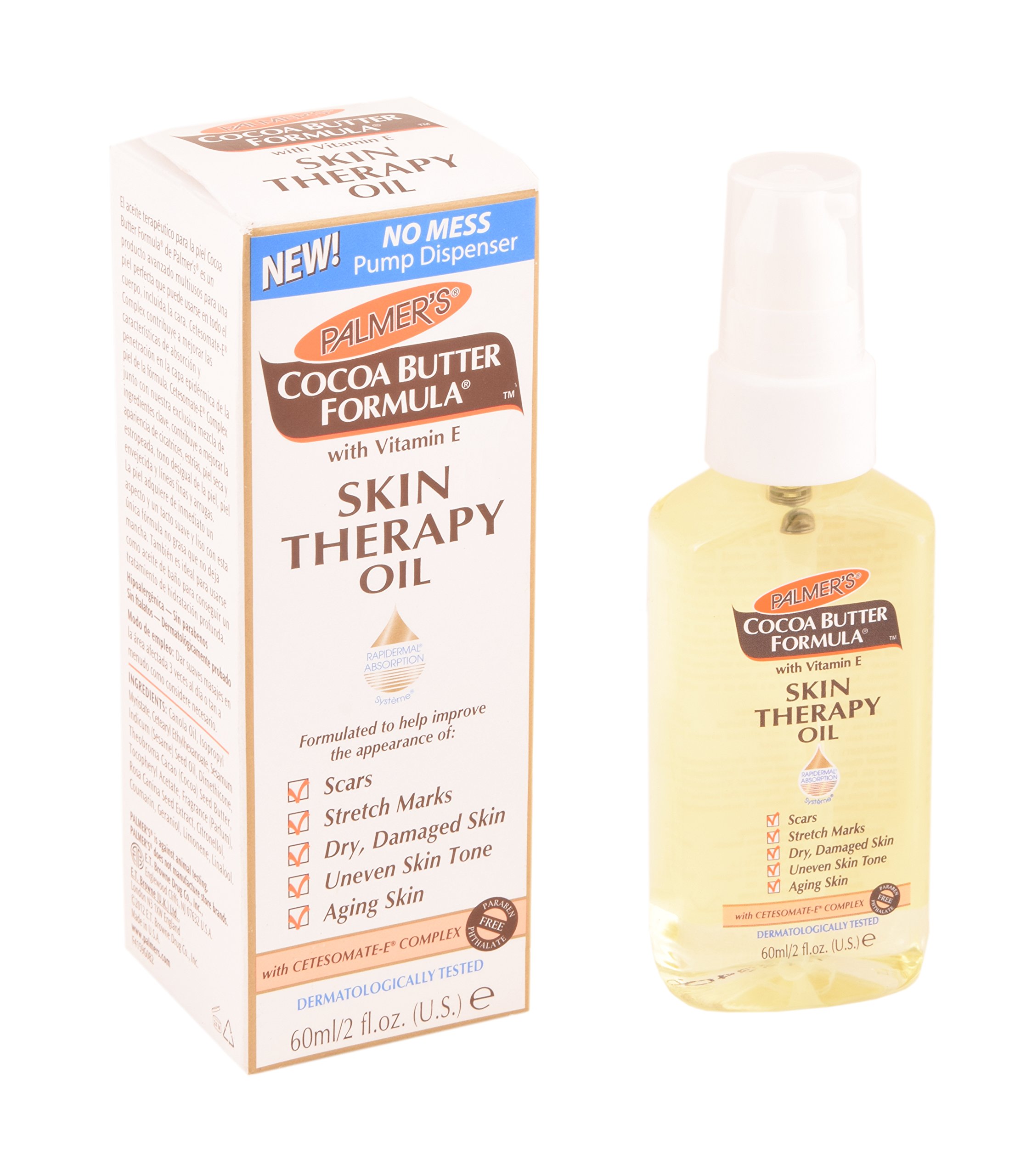 Palmer's cocoa butter formula skin therapy oil is an advanced multi purpose skin perfecting product that can be used all over the body including the face. It is a fast absorbing preservative free light weight dry oil that can be used daily to hydrate the skin. It helps improve the appearance of scars stretch marks dry and damaged skin and uneven skin tone. A blend of carefully selected botanical oils such as sesame and canola oils together with pure cocoa butter and vitamin E skin therapy oil is an all in one skin care solution. Skin looks and feels instantly soft and smooth with this unique non greasy non staining formula.
