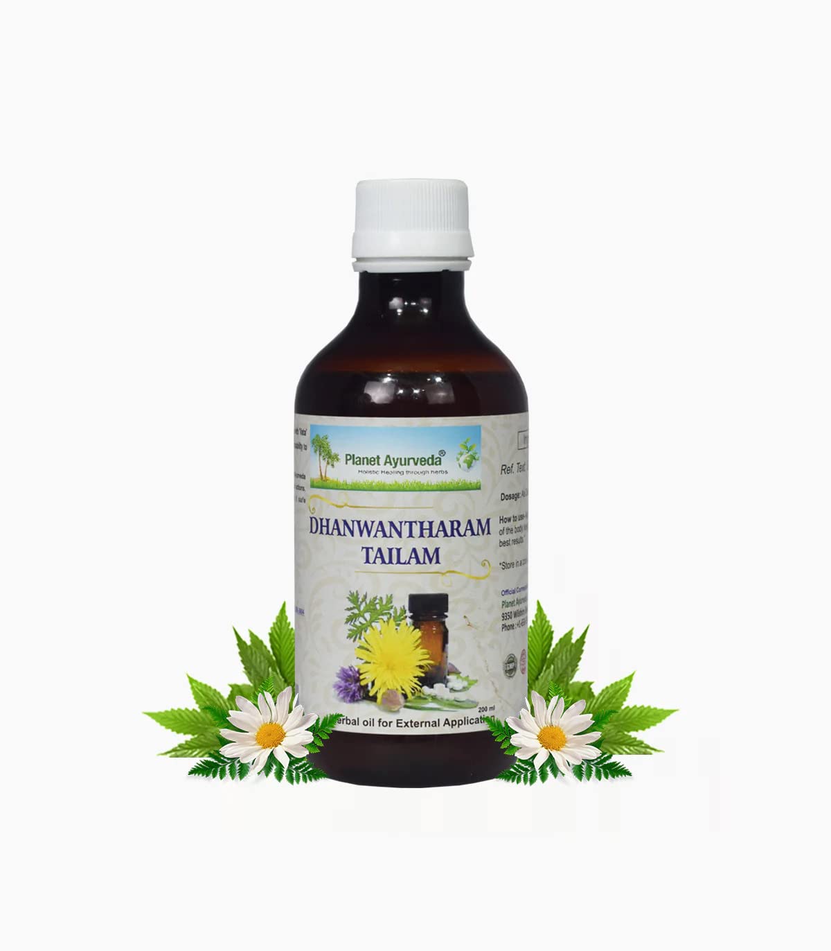 Dhanwantharam Thailam (Oil) is an Ayurvedic oil. It is used to treat the Vata diseases such as Rheumatoid and osteoarthritis spondylitis headache and neuro-muscular conditions. This oil is based on Kerala Ayurveda practice.