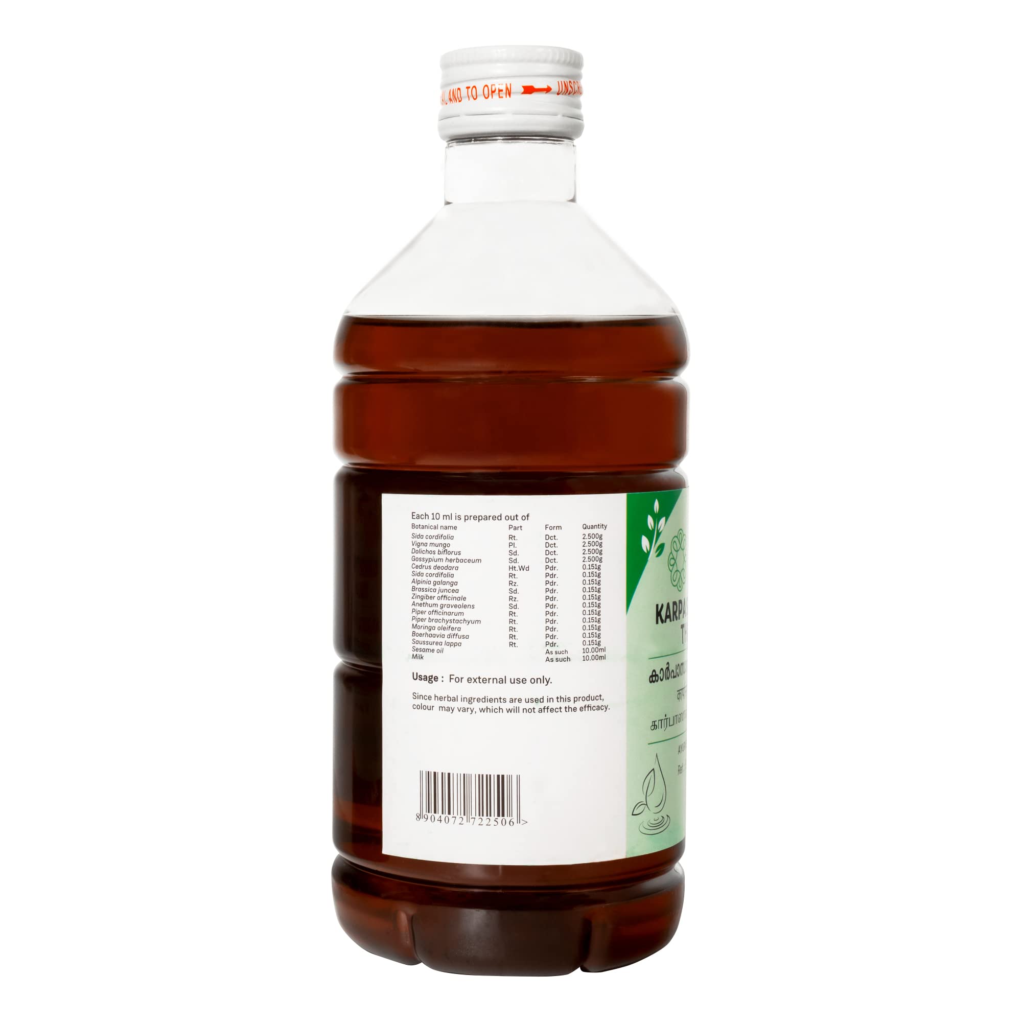 Karpasasthyadi thailam is a nourishing vata-balancing formula. It is indicated for pacifying all kinds of vata derangement in the body with a special affinity to degenerative signs in the shoulder joint. A competent osteomuscular system is the key to a functional and energetic body. Vata dosha is aggravated by a number of factors like faulty diet lifestyle climatic conditions or simply ageing. This vata-derangement manifests as dryness roughness degeneration in the body especially the se and joints. Regular abhyanga with vata alleviating taila keeps these symptoms in check. It calms the body and invigorates the senses. fortified with the nourishing and vata-balancing properties of Karpasasthi (Seed of Gossypium hirsuitum) Bala (Sida cordifolia) Masha (Vigna mungo) Kulattha (Macrotyloma uniflorum) Devadaru (Cedrus deodara) Rasna (Alia galanja) Kushta (Saussurea costus) Shatahwa (Anethum sowa) Sigru (Moringa oleifera) Punarnava (Boerrhavia diffusa) etc.