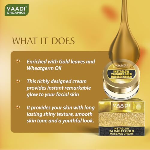 Vaadi Herbals 24 Carat Gold Massage Cream with Kokum Butter for Radiant, Smooth Skin (25 gms)