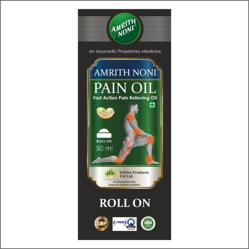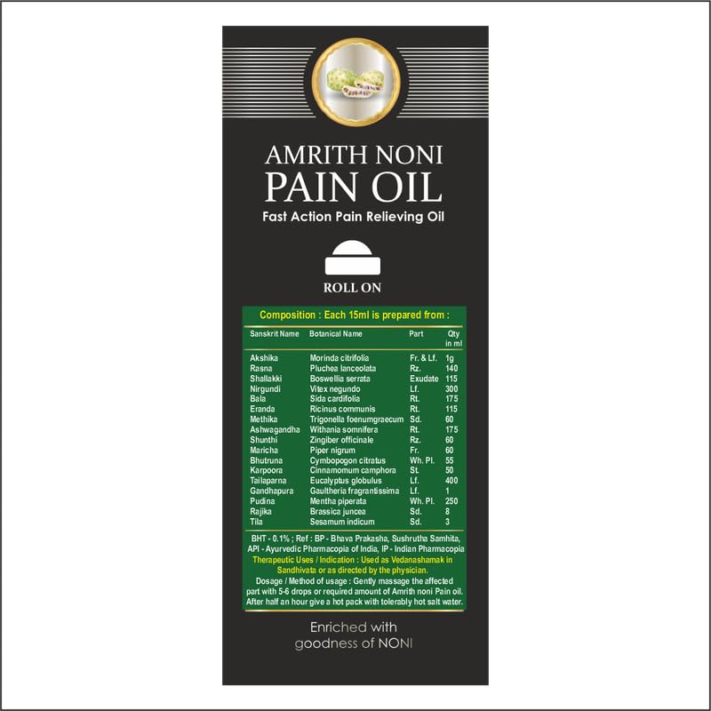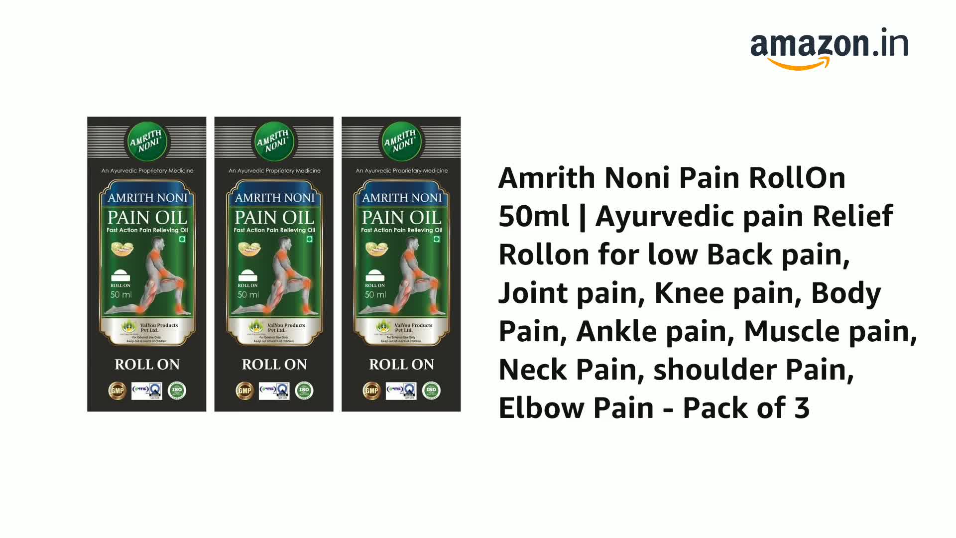 Amrith Noni Pain Oil Rollon 50ml | Ayurvedic pain relief roll on for low Back, Joint, Knee, Body, Ankle, Muscle, Neck, Shoulder, Elbow - Pack of 3