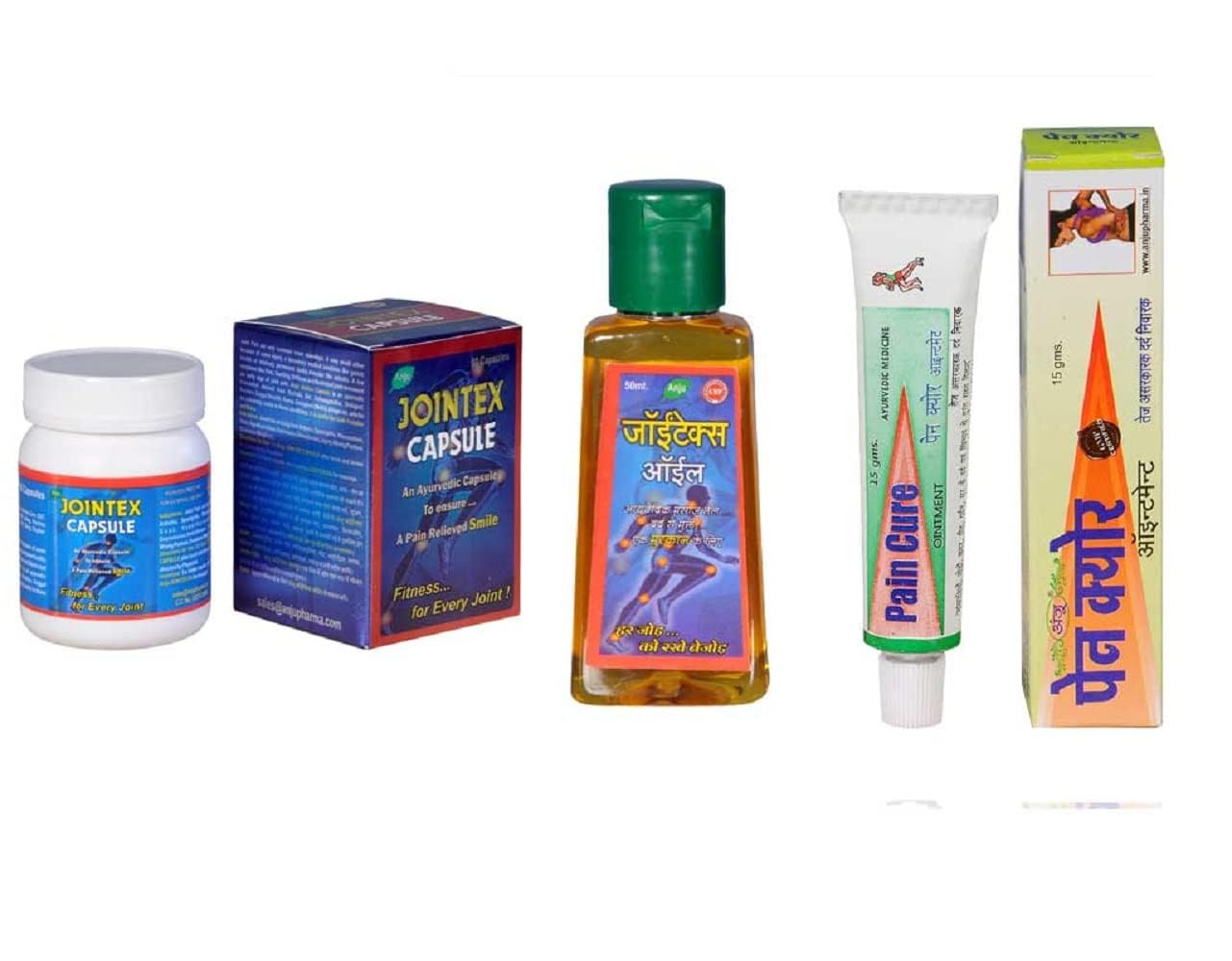 The Anju Jointex Capsules + Anju Jointex Oil + Anju Pain Cure Ointment [1+1+1] bundle offers a holistic approach to supporting joint health and providing targeted relief from discomfort. This unique combo features three synergistic products designed to work together to enhance mobility reduce stiffness and promote overall joint well-being. Anju Jointex Capsules are formulated with a blend of natural ingredients aimed at nourishing joints reducing inflammation and supporting cartilage health. Packed with essential nutrients these capsules help to maintain flexibility and comfort ensuring that your joints remain strong and resilient especially as you age or engage in physical activities. Anju Jointex Oil is a specially designed topical solution that penetrates deeply into the skin delivering its soothing effects directly to the affected areas. The oil helps to promote circulation and relieve soreness while its blend of herbal extracts provides a sense of warmth and comfort. Ideal for areas of the body that experience tension or discomfort the oil supports joint mobility and overall physical ease. Anju Pain Cure Ointment complements the capsules and oil with its acting formula providing targeted relief to areas in need of extra care. This ointment is known for its cooling and calming effects reducing the feeling of tightness and supporting the bodyâs natural healing processes. Its non-greasy texture makes it easy to apply and absorb offering a convenient solution for pain management. Together these three products form a trio that addresses joint discomfort from multiple angles. Whether you're looking to support long-term joint health manage occasional stiffness or soothe localized discomfort this bundle offers a natural effective way to keep you moving with ease. With consistent use you may experience improved flexibility enhanced mobility and a greater sense of comfort throughout your day.