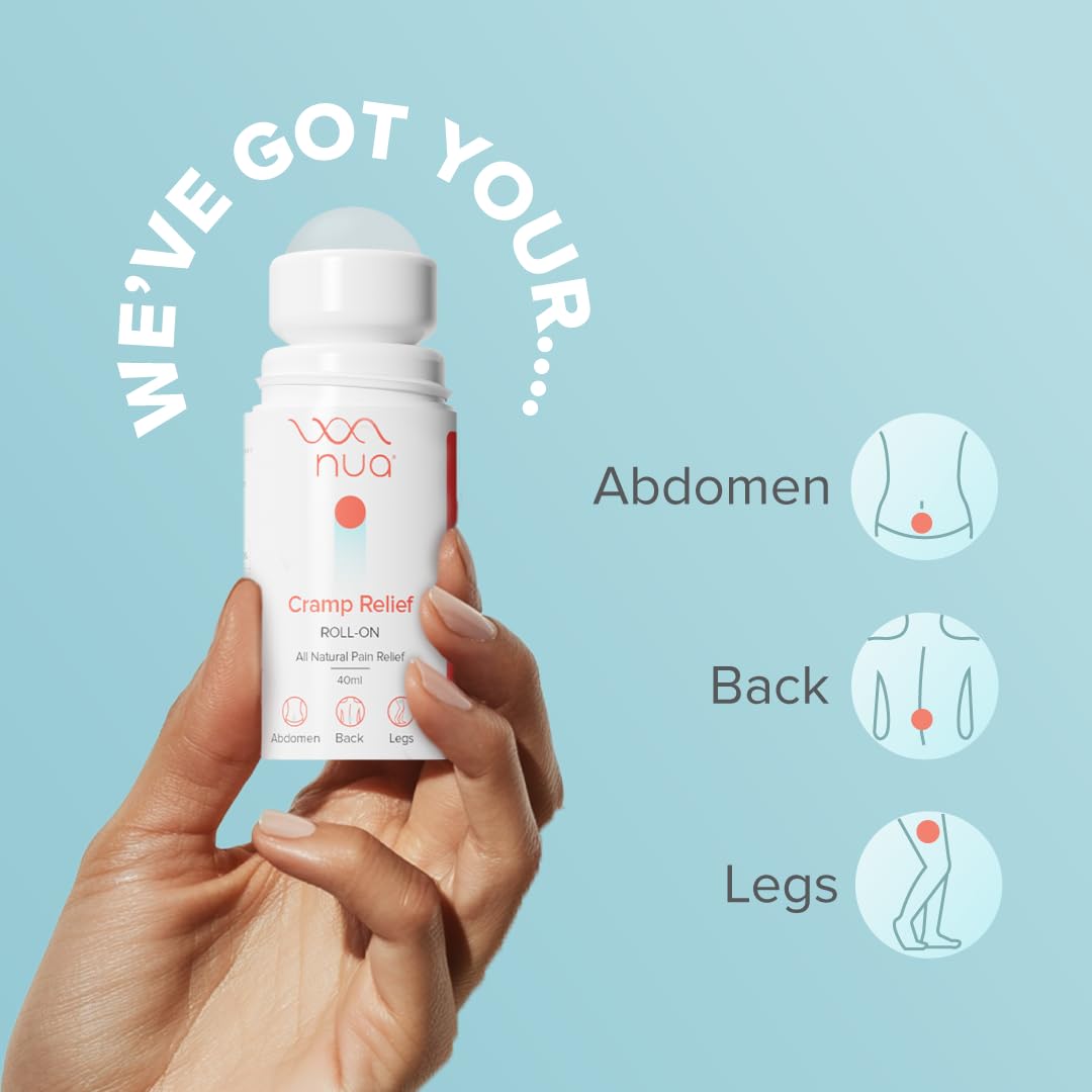 Cramp Relief Roll-On by Nua | Designed to be gentle and non-irritating, our formula is suitable for sensitive skin and offers comfortable pain relief without any risk of irritation or adverse reactions.