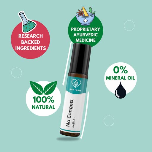 Herb Tantra No Congest Roll-On | Clears Blocked Nose | Decongest Oil Blend with Eucalyptus Oil Peppermint Oil and Ajwain | Roll-On| 9ml Pack of 1
