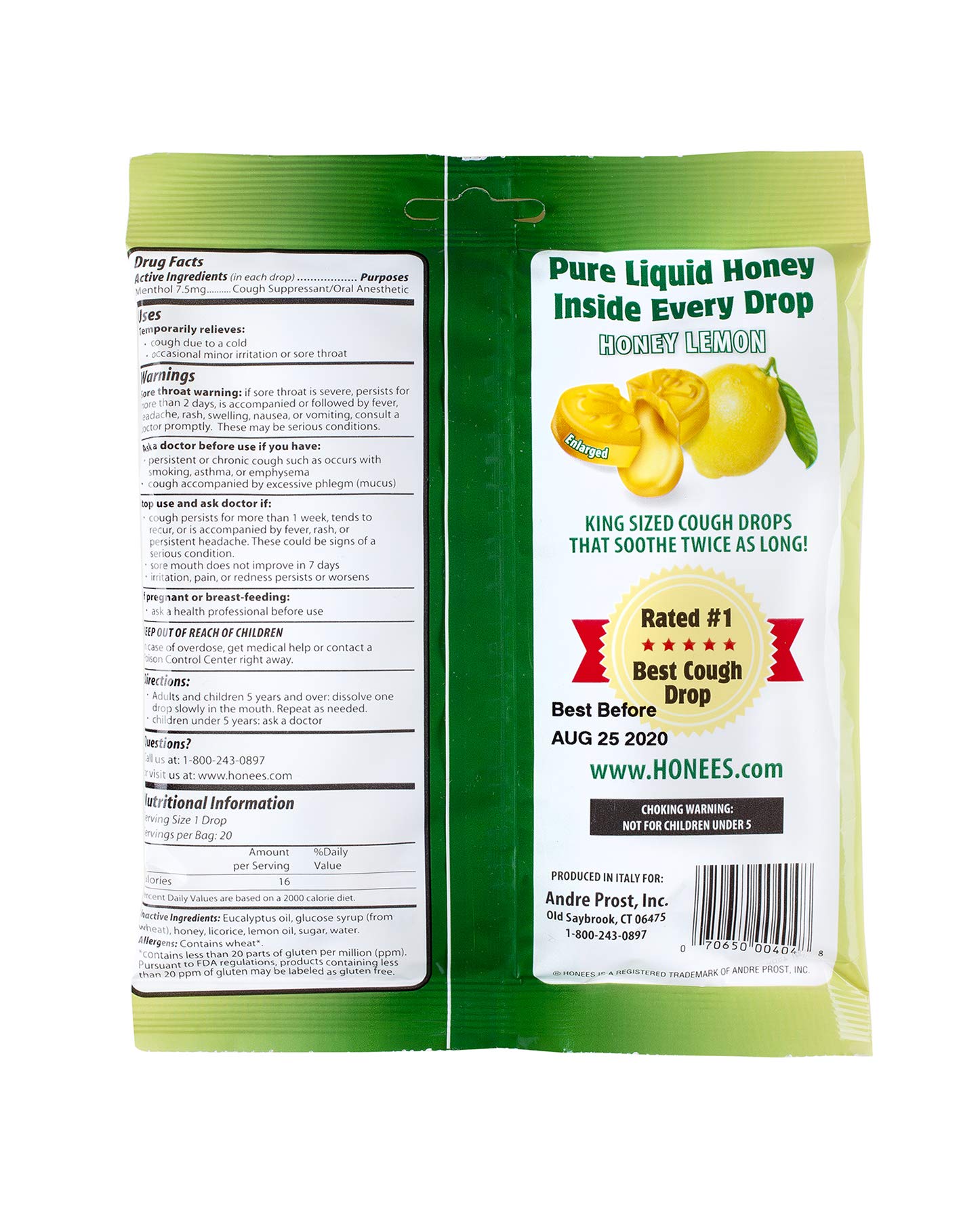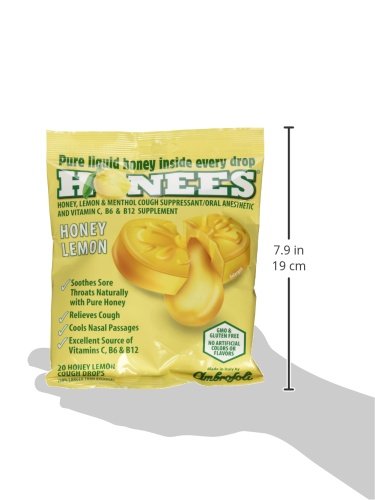 Honees Honey Lemon Cough Drops - 20-Piece, Single Pack Honey-Filled Lozenges | Temporary Relief from Cough | Soothes Sore Throat | All Natural