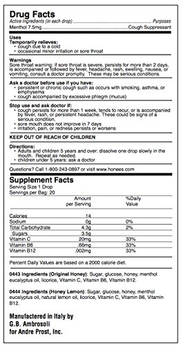 Effective Remedy. Each Honees Cough Drop contains pure liquid honey. Honey is a time-honored remedy for a sore throat. Some studies have shown honey appears to be as effective as a common cough suppressant ingredient dextromethorphan in typical over-the-c