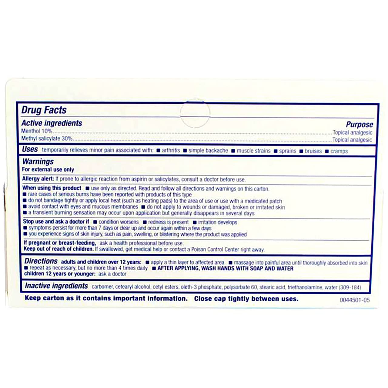 Temporarily Relieves Minor Pain Associated with Arthritis Simple Backache Muscle Strains Sprains Bruises and Cramps. It comes in a quantity of 1.25 oz.