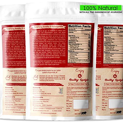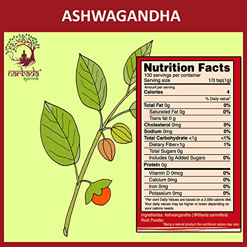 Narbada Ayurveda Ashwagandha Powder Extra Energy Stress Relief Sound Sleep Blood Sugar Support Immunity Booster100 g