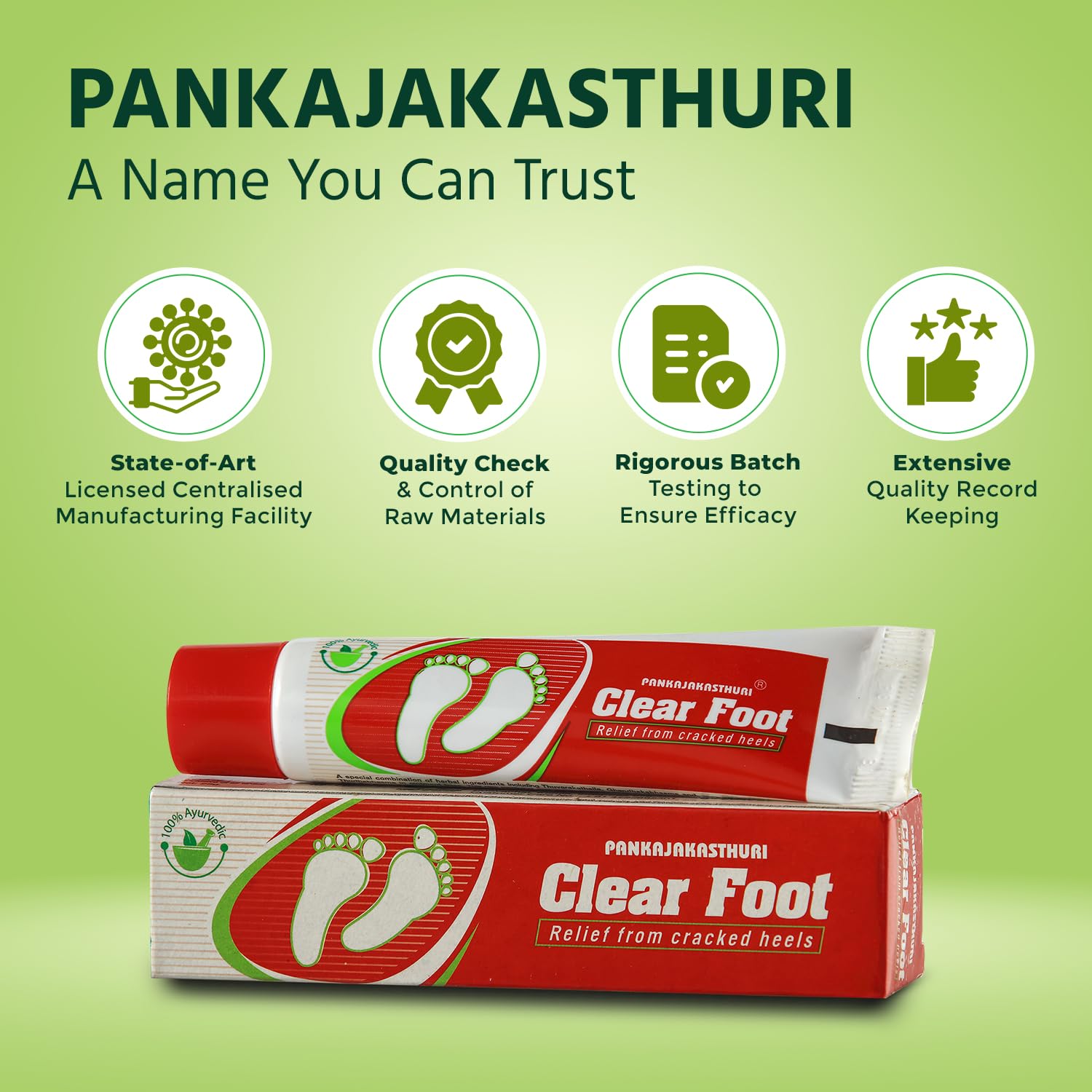 Pankajakasthuri Clear Foot Ayurvedic Ointment for Cracked Heels Dry Skin & Heel Pain - 25g