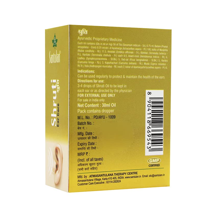 Santulan Ayurveda Shruti Oil-30ML Each (Pack Of 1) Medicated Oil For Ears and get Golden Oldie Herbs® Sukanthi Pills-1gm