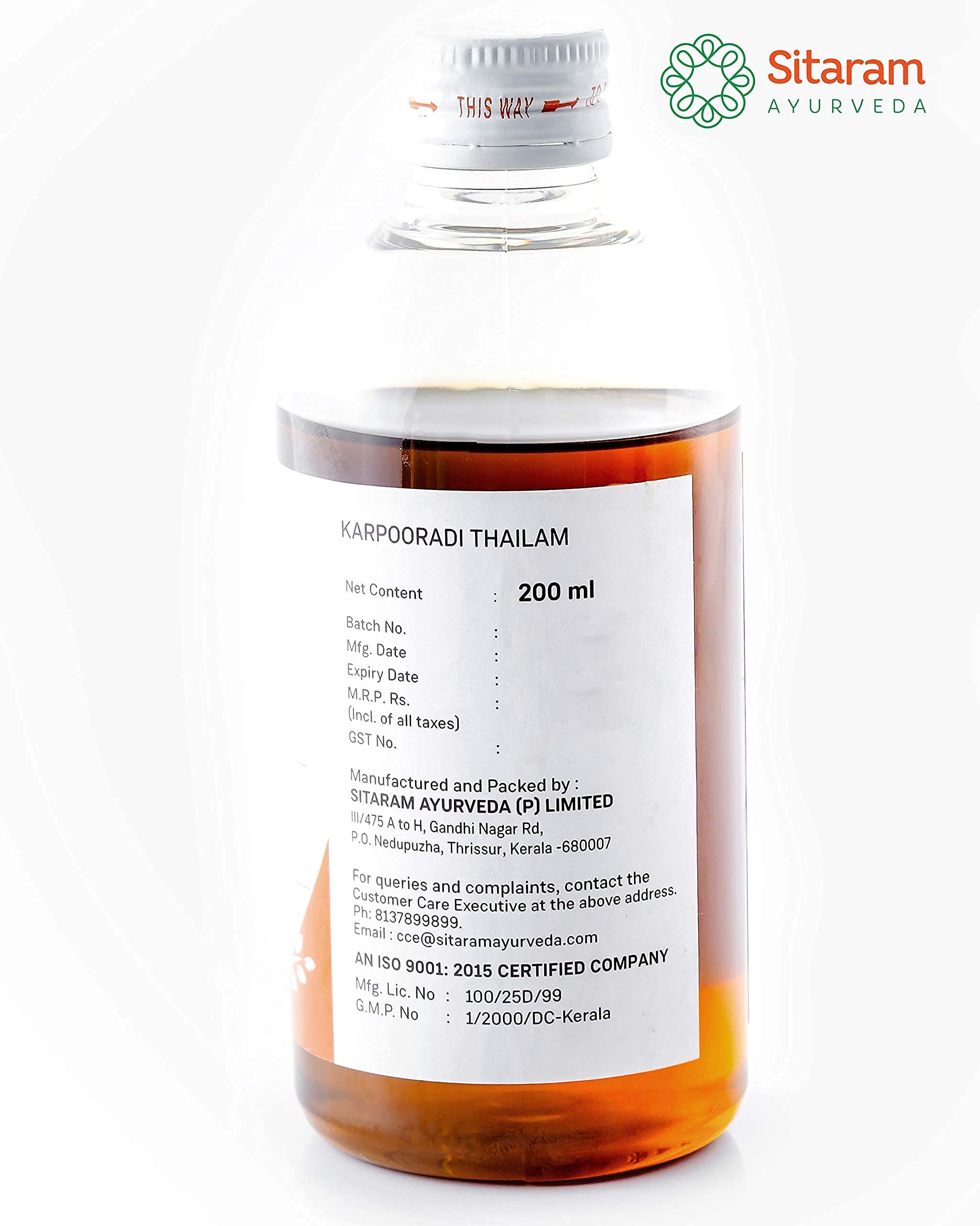 Sitaram Ayurveda Karpooradi Thailam 200ml | Ayurvedic Karpooradi Thailam oil for immediate relief from joint pain muscular cramps and aches