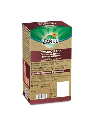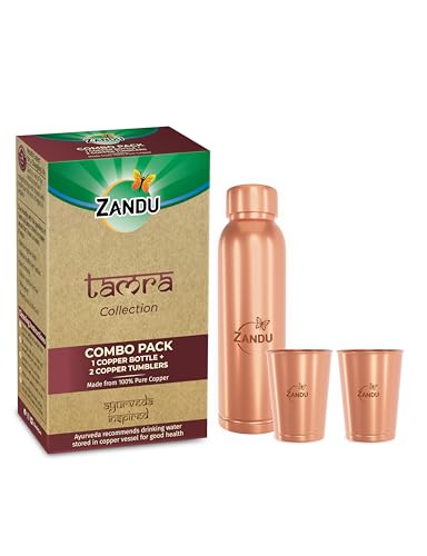HomeHealth & PersonalHealth & WellnessHerbal Pain ReliversZandu Copper Gift Set Pack (1 Bottle & 2 Tumbler): Made with 100% Pure Copper |Supports Digestive & Liver Health | Helps Enhance Immunity| Useful in Promoting Overall Health (Pack of 950ml & 2x300ml)