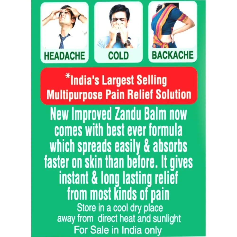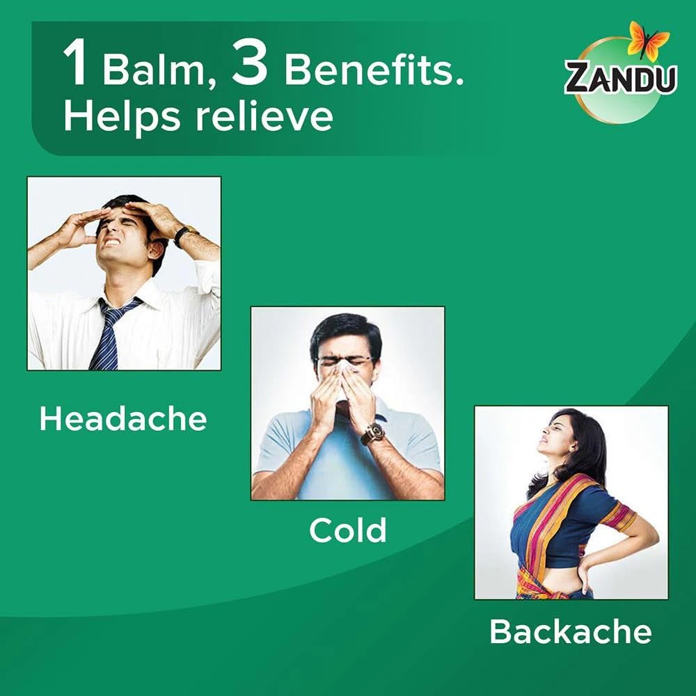 • Soothes Headaches and Sinus Congestion: With its cooling effect Zandu Balm helps to alleviate headaches and sinus congestion caused by cold and cough symptoms.