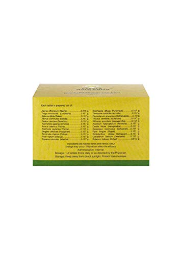 Ingredients: Maharasnadi kwath tablet (qty/tab) rasna (alpinia officinarum) - 1.8 G dhanvayasa (tragia involucrata) - 0.9 G bala (sida cordifolia) - 0.9 G erandamula (ricinus communis) - 0.9 Gdevadaru (cedrus deodara) - 0.9 G shati (hedychium spicatum) - 0.9 G vacha (acorus calamus) - 0.9 G vasaka (adathoda vasica) - 0.9 G nagara (zingiber officinale) - 0.9 G pathya (terminalia chebula) - 0.9 G cavya (piper chaba) - 0.9 G musta (cyperus rotundus) - 0.9 G punarnava (boerhaavia diffusa) - 0.9 G guduchi (tinospora cordifolia) - 0.9 G vriddhadaru (ipomea petaloidea) - 0.9 G satapuspa (anethum sowa) - 0.9 G gokshura (tribulus terrestris) - 0.9 G asvagandha (withania somnifera) - 0.9 G ativisha (aconitum heterophyllum) - 0.9 G aragvadha (cassia fistula) - 0.9 G satavari (asparagus racemosus) - 0.9 G pippali (piper longum) - 0.9 G sahachara (strobilanthes ciliatus) - 0.9 G dhanyaka (coriandrum sativum) - 0.9 G brahati (solanum indicum) - 1.8 G.