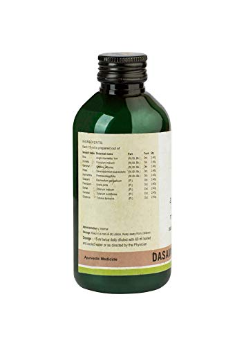 Dasamoolam Kwath is a classical Ayurveda formulation beneficial in respiratory disorders. It aids relief in respiratory infections dyspnoea and cough and helps relieve indigestion and gas trouble. Dasamoolam Kwath helps reduce fever due to its anti-pyretic activity and also beneficial in reducing oedema. the intake of Dasamoolam Kwath helps improve excessive sleep and also beneficial in depression.