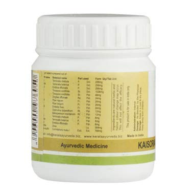 Kaisoravatakam is a classical Ayurveda formulation in Tab.. form effective in various skin disorders and rheumatism. It helps relieve various types of skin disorders including Psoriatic arthritis. The anti-inflammatory properties of the ingredients in Kaisoravatakam make it beneficial in the treatment of ulcers carbuncles and rheumatism. Kaisoravatakam also helps in alleviating the symptoms related to the fistula.
