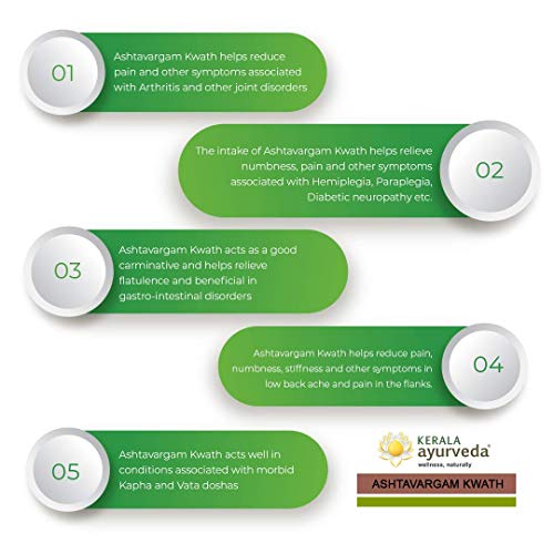 Ashtavargam Kwath is a classical Ayurveda formulation beneficial in rheumatic complaints. It is beneficial in Vata predominant conditions such as Rheumatoid arthritis joint pain and neurological manifestations. Ashtavargam Kwath also helps in relieving numbness and other neurological symptoms associated with Paraplegia Hemiplegia etc.