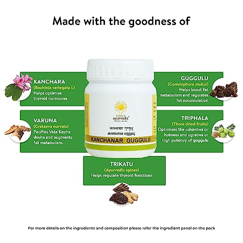 Kanchanaragulgulu is an Ayurvedic formulation in Tab.. form beneficial in abnormal growths inside the body. When taken with suitable adjuvants Kanchanaragulgulu helps in relieving the symptoms of goitre tumors skin diseases ulcers fistula-in-ano etc. It also helps reduce the symptoms related to cysts fibroids and abdominal distension.