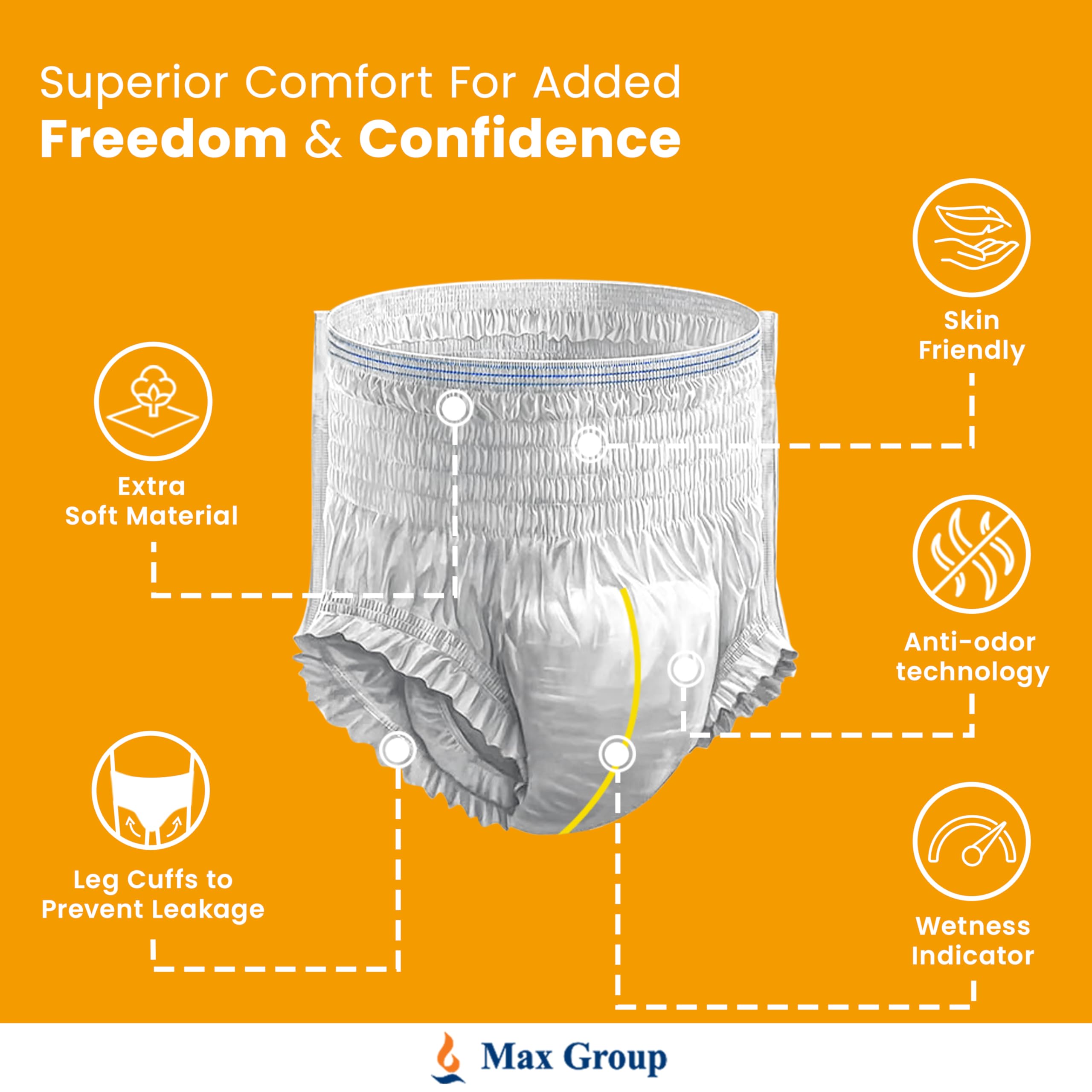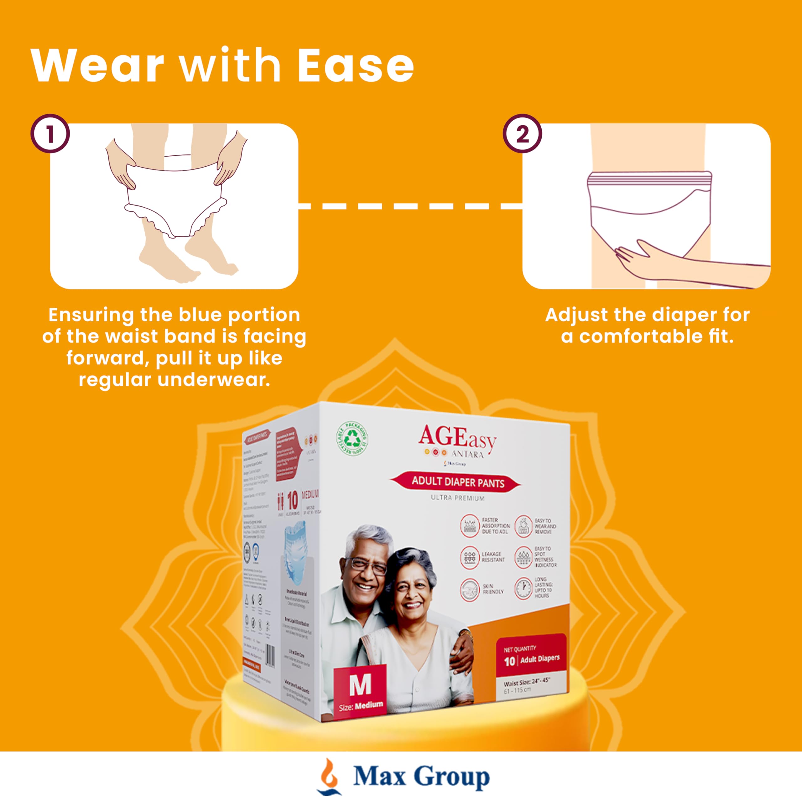 AGEasy (Max Group) Unisex Adult Diaper Pants with Wetness Indicator | Odour Lock & Anti-Bacterial | Skin Friendly Pant Style Diapers for Easier Wearing & Removal | Pack of 1 (10 Count) (M)
