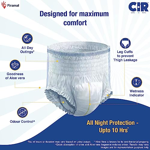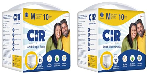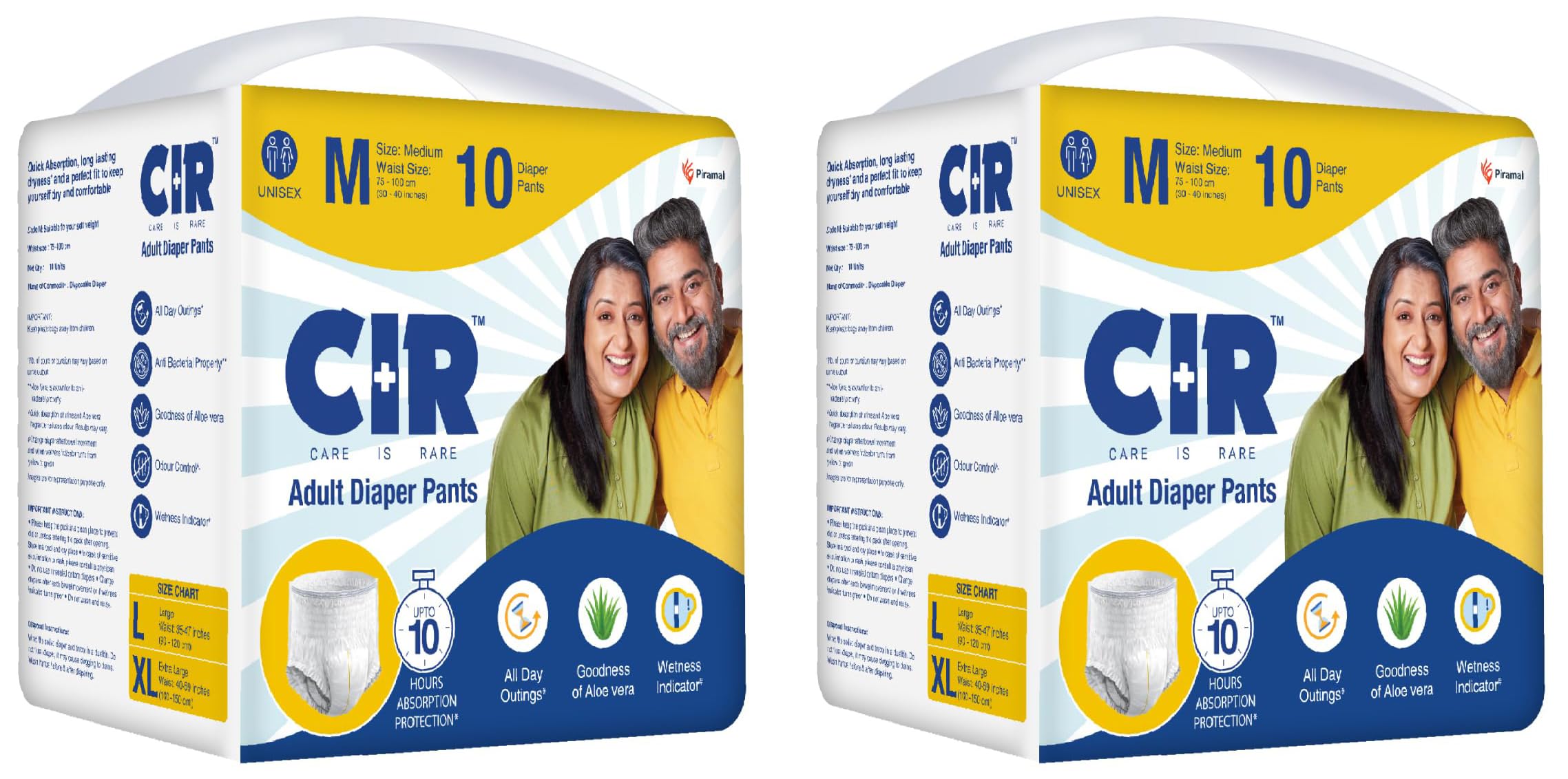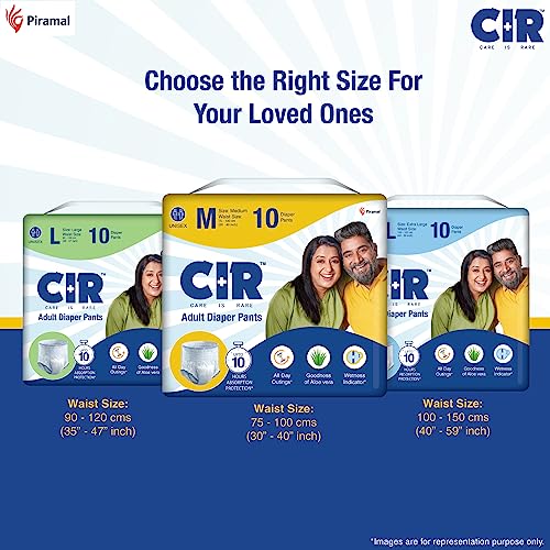 CIR Adult Diaper Pants, Medium (75-100 cm I 30” – 40”) I Unisex with Wetness Indicator I Odour Control I 10 hr Absorption-Protection I Goodness of Aloe Vera I 10 Units (Pack of 2)