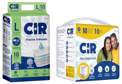 CIR Adult Diaper Pants, Medium (75-100 cm I 30” – 40”I 10 Units & CIR Premium Underpads, Large (90x60cm) I 10 Units x Pack of 1 COMBO
