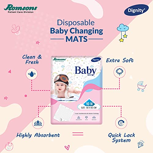 Dignity Disposable Baby Changing Mats, 60 X 60 cm, 10 pcs/Pack (Pack of 6) 60 Pcs