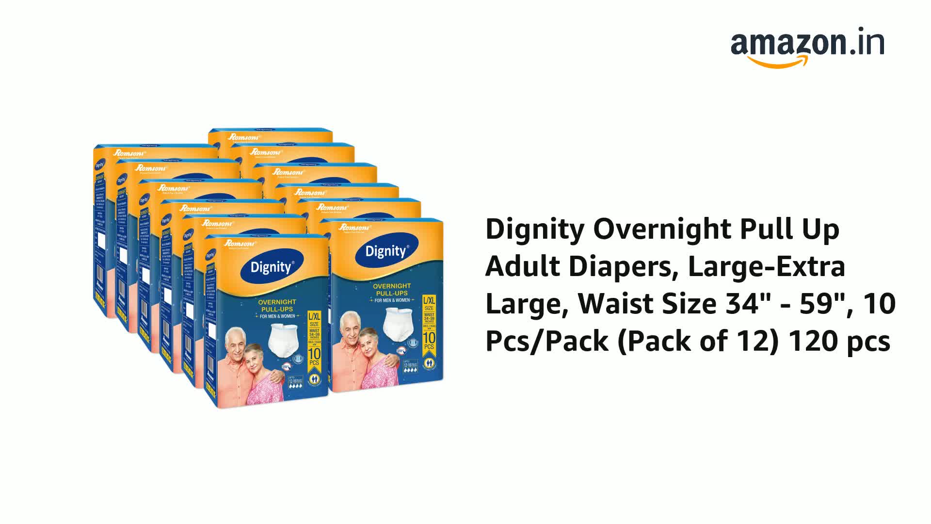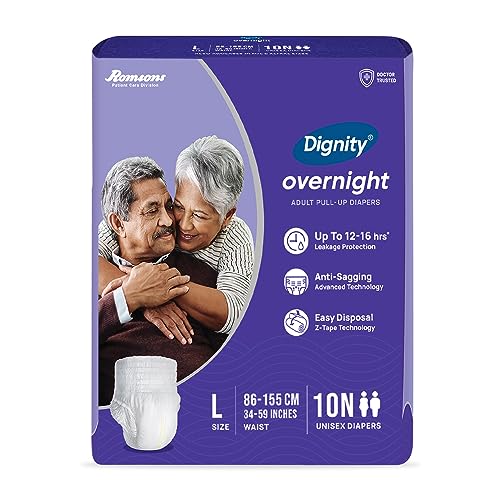 • Dignity Overnight Pull-Up Adult Diapers are underwear style diapers designed for involuntary urination or defecation in both men & women. Overnight Pull-Ups provide Protection for up to 12-16 hours.