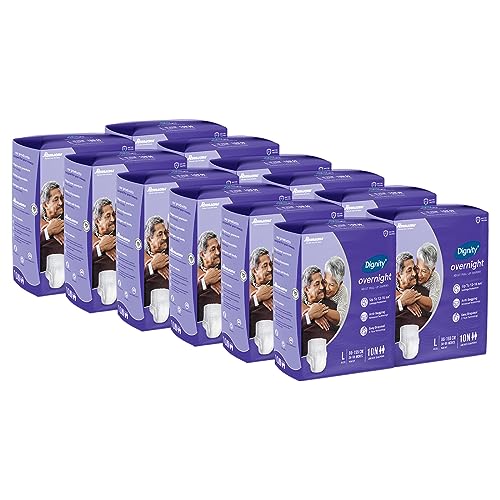 Dignity Overnight Pull Up Adult Diapers Pant Style - 120 Count (Large) with Soft Elastic and Extra Absorbent Core, Waist Size 34" - 59", 10 Pcs/Pack (Pack of 12)