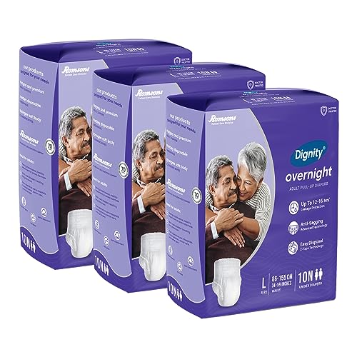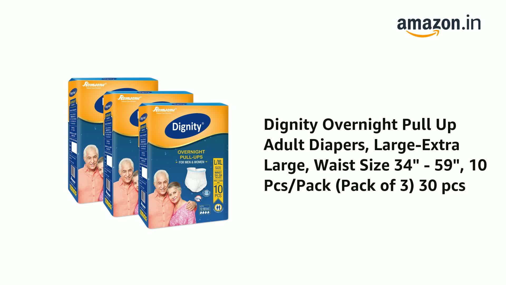 Dignity Overnight Pull Up Adult Diapers Pant Style - 30 Count (Large) with Soft Elastic and Extra Absorbent Core, Waist Size 34" - 59", 10 Pcs/Pack (Pack of 3)