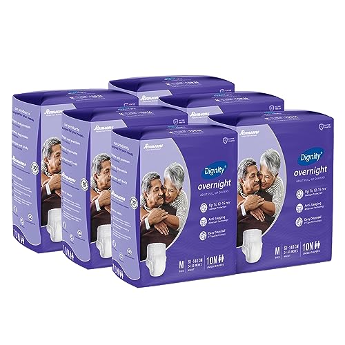 Dignity Overnight Pull Up Adult Diapers Pant Style - 60 Count (Medium) with Soft Elastic and Extra Absorbent Core, Waist Size 24" - 53", 10 Pcs/Pack (Pack of 6)