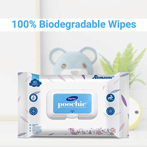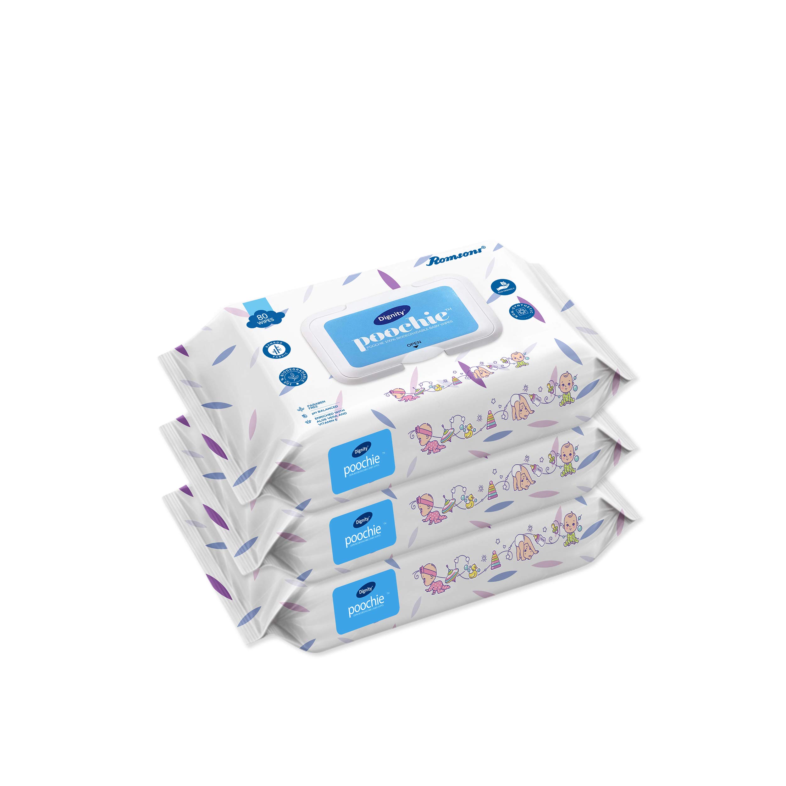 Dignity Poochie Biodegradable Baby Wipes, 150 x 200 mm, 80 Wipes/Pack - Pack of 3 (Clear)