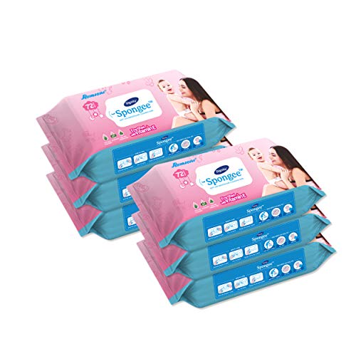 DIGNITY Spongee Baby Wet Wipes, 150 x 200 mm, 72 Wipes/Pack (White, 432 Wipes) - Pack of 6