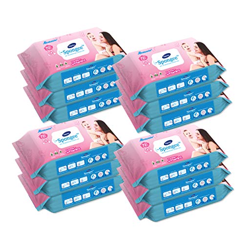 DIGNITY Spongee Baby Wet Wipes, 150 x 200 mm, 72 Wipes/Pack (White, 864 Wipes) - Pack of 12