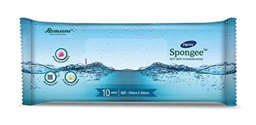 Dignity Spongee Soft Body Cleansing Wet Wipes for Adult, 240x300 mm, 10 Wipes/Pack (Pack of 9), 90 Wipes