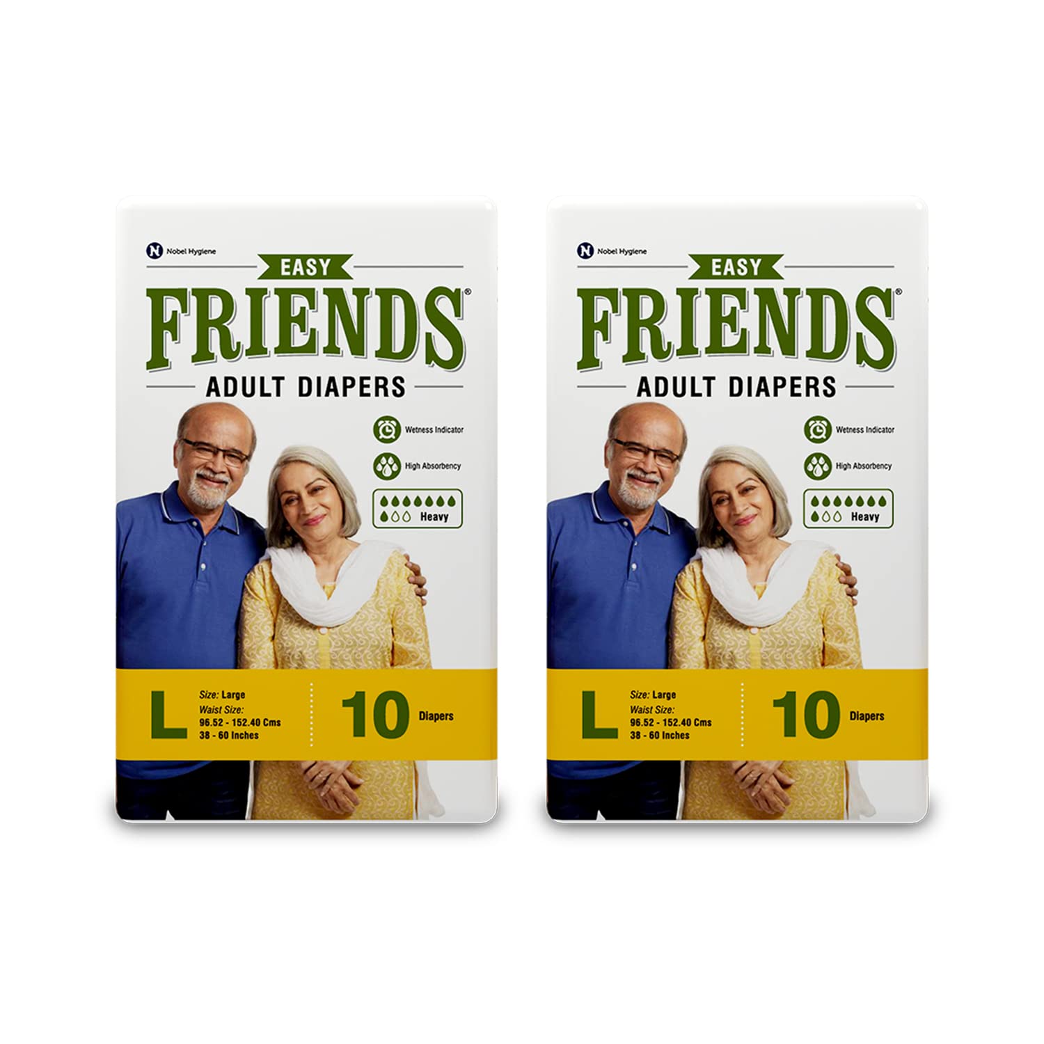 Friends Easy Adult Diapers Tape Style - 20 Count (Large) with odour lock, Unisex, Leakproof, Wetness Indicator and Anti-Bacterial Absorbent Core- Waist Size 32.68-59.84 inch; 83-152 cm